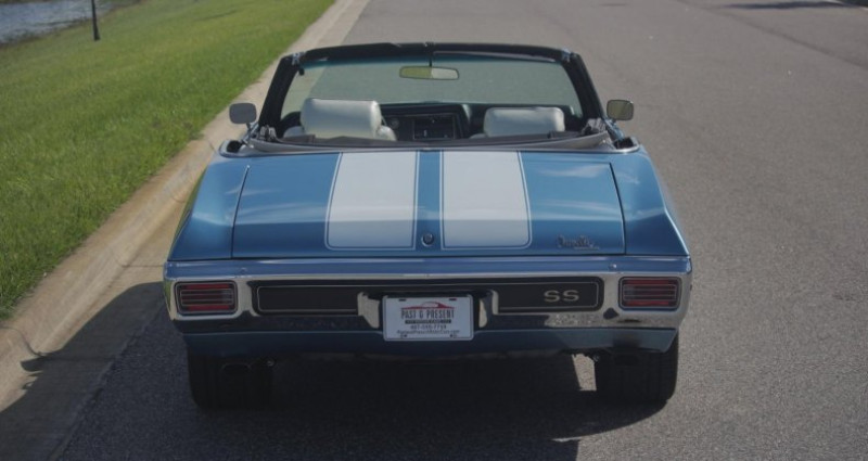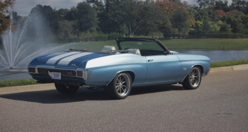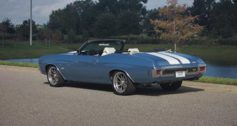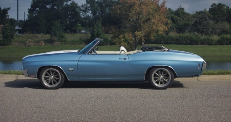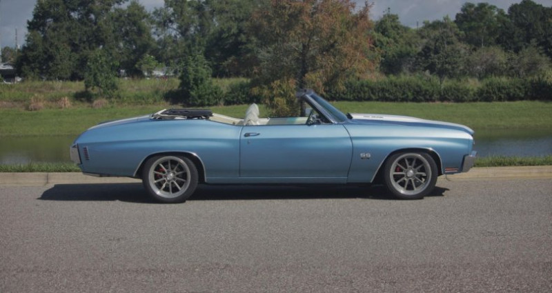 - Marque : Chevrolet - Modèle : Chevelle - Année : 1970 - Version : SS Convertible - Moteur : 5.3L LS V8 - Boîte de vitesses : Automatique 4L60 - Couleur extérieure : Astro Blue - Couleur intérieure : Blanc - Drivetrain : RWD - Mileage : 3 743 - Suspension : UMI, QA1 - Freins : 4-pistons avant - Roues : 18 pouces American Racing - Condition : Répaint professionnel, panneaux originaux sauf le capot - Climatisation : Vintage Air - Radio : RetroSound - Toit : Tirable électrique - Options : Pas de données fournies sur les options supplémentaires. Provenance : Florida. Disponibilité : environ 7 semaines, clés en main. 127 000 € tout compris (importation, taxes, procédure d'immatriculation). Annonce publiée le 31/12/2025