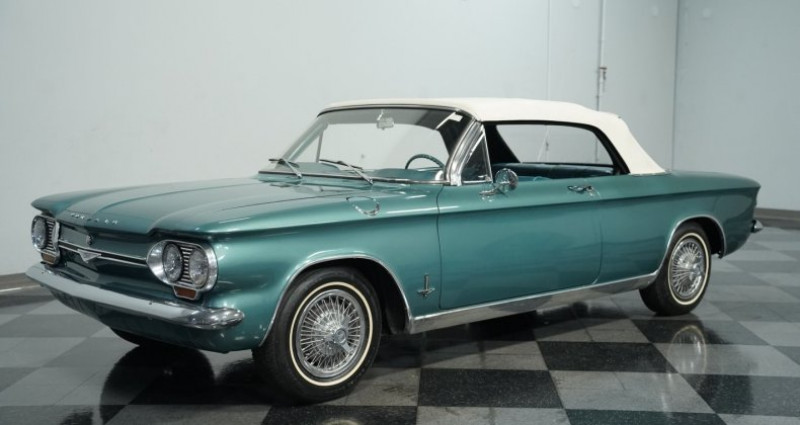 1964 Chevrolet Corvair Monza Convertible, 164 CI Flat 6, 4-Speed Manual Trans, Lagoon Aqua Exterior, Aqua Interior, RWD, 84, 534 miles, Factory VIN: 40967W163476. Provenance : Georgia. Disponibilité : environ 7 semaines, clés en main. 29 000 € tout compris (importation, taxes, procédure d'immatriculation). Annonce publiée le 26/11/2025