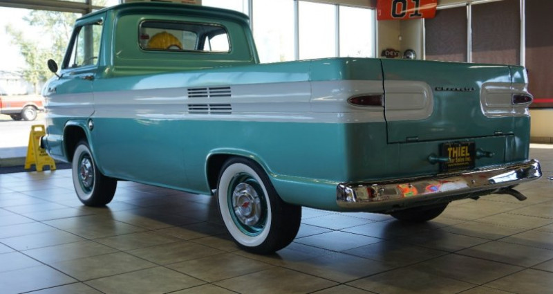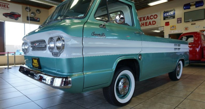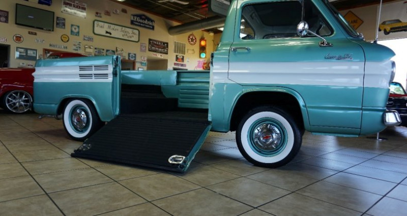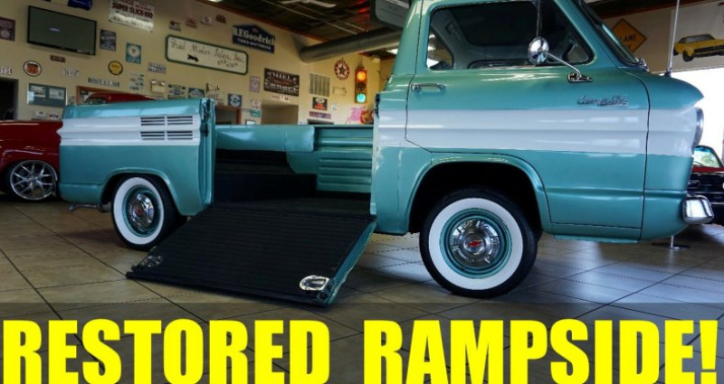 - Marque : Chevrolet - Modèle : Corvair 95 Rampside Truck - Année : 1961 - Couleur extérieure : Vert clair métallisé et blanc - Couleur intérieure : Gris à carré - Transmission : Manuelle à 4 vitesses - Propulsion : Rear-Wheel Drive (RWD) - Moteur : 2.4L Flat 6-Cylindre arrière monté - État : Restauré en 2016 - Kilométrage : 6 834 miles (non converti). Provenance : Iowa. Disponibilité : environ 7 semaines, clés en main. 33 500 € tout compris (importation, taxes, procédure d'immatriculation). Annonce publiée le 12/12/2025