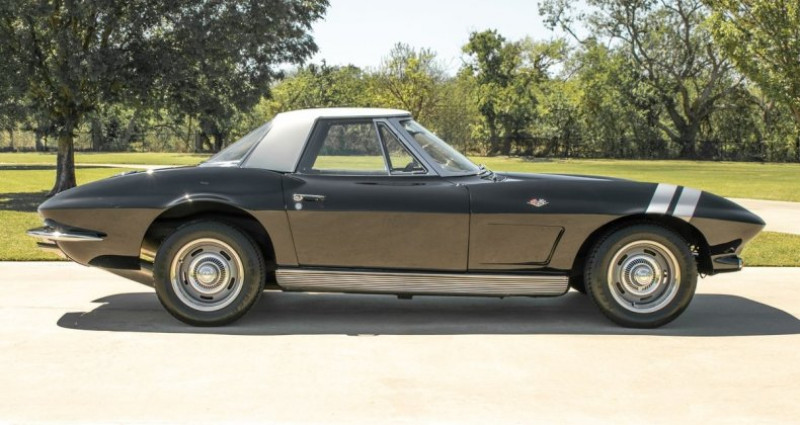 Ce 1963 Chevrolet Corvette cabriolet a été refurbi en 2022 selon le vendeur, qui l'a acquis cette année-là. Le corps a été repeint en noir et l'intérieur a été remodelé avec des coussins en cuir noir en vinyle. La puissance est fournie par un moteur V8 remplacé de 327 ci lié à une transmission manuelle à quatre vitesses et à une différentielle Positraction, ainsi qu'un radiateur en aluminium installé avec un ventilateur électrique et des collecteurs d'échappement en alliage. La partie avant du corps a été modifiée avec des portes de phares retirées, une grille d'entrée arrière personnalisée équipée de phares à LED, et chaque flare de capot a été élargie. Le véhicule est également équipé d'un tapis de capot noir souple et d'un couverture de capot noir removable, ainsi qu'une radio Custom Autosound, une colonne de direction rabattable, une échappement à deux sorties, et des roues de rallye de 15 pouces. Ce cabriolet C2 modifié est proposé avec son capot retiré et un couverture de véhicule. Le corps en fibre de verre original était peint en bleu et a été repaint en noir en 2022 selon le propriétaire précédent. Les flares de roues ont été élargis, les bosses avant ont été enlevées, les portes de phares ont été retirées et une grille d'entrée arrière personnalisée avec des phares à LED ont été ajoutés, ainsi que des bandes argentées sur le flanc droit avant. Les autres caractéristiques comprennent un capot de type 1964, un capot de type 1963 retiré qui accompagnera le véhicule, une toiture removable blanche douce, une toiture rigide removable blanche, des feux de queue quadruples, des échappements chromés sur les bosses arrière et des sorties d'échappement double qui sortent par le diffuseur. Une suspension indépendante complet est installée, avec des bras de contrôle supérieur et inférieur à l'avant et un ensemble de trois liens avec une feuille transversale à l'arrière. Les freins sont à disques sur les quatre roues. Le vendeur note que la boîte de vitesses a été remplacée sous la propriété actuelle, et des câbles de frein de stationnement après-vente ont été installés. La cabine retravaillée présente deux sièges sièges de sport en cuir noir en vinyle, ainsi que des panneaux de porte et tapis colorés à l'intérieur. Les équipements comprennent une colonne de direction rabattable, une radio Custom Autosound numérique, une montre analogique, et des ceintures de sécurité. Le moteur V8 remplacé a été remis en état en 2022 selon le propriétaire précédent, et il dispose d'un carburateur à quatre barres et des couvercles de soupapes verni. Un radiateur en aluminium est accompagné d'un ventilateur électrique, et les collecteurs d'échappement en acier argenté alimentent une échappement à double sortie.. Ce descriptif est basé sur les éléments communiqués par le propriétaire avec un traitement assisté. Merci pour votre indulgence en cas de formulation perfectible. Provenance : Florida. Disponibilité : 7 semaines, clés en main. 53 500 € tout compris (importation, taxes, procédure d'immatriculation). Annonce publiée le 02/10/2025
