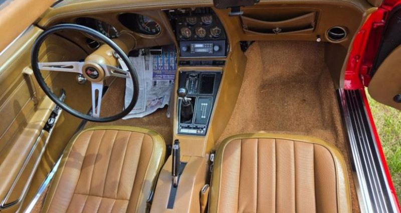 Le véhicule en vente est une Corvette Stingray C3 rouge de 1971 équipée d'une boîte manuelle à 4 vitesses. Elle dispose d'un moteur de 350 chevaux et a parcouru 31 933 milles d'après les informations indiquées sur le tableau de bord. Sa plaque d'immatriculation est exempte de contrôle de la mileage. Elle a été repaint en finition base coat clear coat en 1992 à un coût de 3 200 dollars. Le moteur original a été révisé à 0, 020 sur en 1991, à une mileage de 25 363. Le siège, le tapis, ainsi que divers accessoires ont été remplacés au fil des ans. Nous avons également effectué un changement d'huile et du filtre, et avons remplacé le joint de roue arrière droit, les amortisseurs et les freins de roue arrière droit et avant gauche, les amortisseurs de bras de suspension, les liens de barre stabilisatrice, l'arbre d'entraînement, et beaucoup d'autres pièces. Cette Corvette C3 fonctionne et conduit très bien.. Provenance : , USA. Disponibilité : 7 semaines, clés en main. 40 000 € tout compris (import, taxes, procédure d'immatriculation). Annonce publiée le 02/10/2025