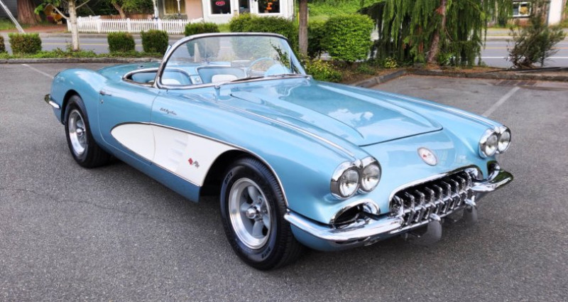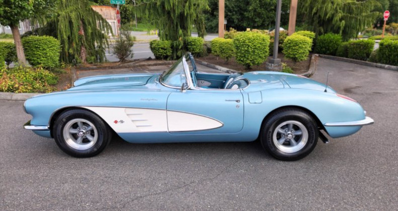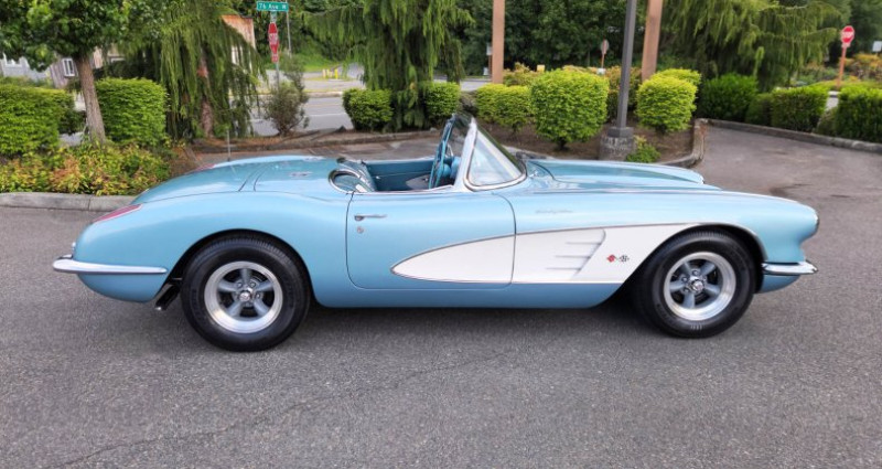 Le véhicule en question est un Chevrolet Corvette Roadster de 1959, doté d'une puissance de 300 ch et d'un bloc d'identification #3782870. Il est peint en couleur de couronne saphir métallique, complété par un intérieur bleu/blanc, dans un état supérieur et considéré comme l'un des plus beaux modèles de 1959. Il est fourni avec un toit d'origine qui présente quelques taches un peu opaques dans la lunette arrière. Le corps, les portes et le capot présentent une réunion exceptionnelle. Le radiateur à 4 noyaux, le Carter AFB et la conversion à alternateur ont été effectués. Les emblèmes, le coffre détaillé, les garnitures et les joints ont été remplacés. La qualité générale est exceptionnelle avec des boucliers, des bas de caisse et des bandes en acier inoxydable neuves. L'équipement comprend des roues American Racing TTO et des pneus neufs. Le véhicule a été récemment entretenu avec des modifications du système de transmission, des contacteurs et des garnitures. Le véhicule est amusant et abordable, et des financements et échanges peuvent être arrangés. Le numéro de série V.I.N. est J59S10273416, et il a accumulé 362 miles. Pour plus d'informations, contactez Adolfo Sandoval ou Jim Grant.. Ce descriptif est basé sur les éléments communiqués par le propriétaire avec un traitement assisté. Merci pour votre indulgence en cas de formulation perfectible. Provenance : Washington. Disponibilité : 7 semaines, clés en main. 72 000 € tout compris (importation, taxes, procédure d'immatriculation). Annonce publiée le 03/10/2025