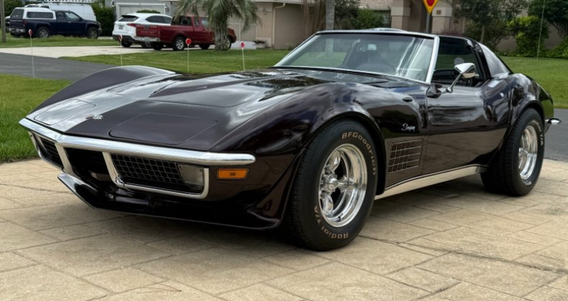 Un exemple remarquable de la collection de voitures de sport des années 1970, cette Chevrolet Corvette de 1970 est dotée d'une peinture Black Cherry et d'un intérieur noir. Equipée d'une transmission manuelle et d'un moteur à huit cylindres, cette coupé dispose de deux sièges et deux portes. La voiture a accumulé seulement 8 000 miles sur l'odomètre, et aucun propriétaire n'a précédé le dernier. Cette Corvette est un objet de désir pour les passionnés de voitures de collection, grâce à son design iconique, à son moteur puissant et à son conduite agréable. Cette voiture est en très bon état et possède de nombreuses améliorations modernes, telles que l'injection d'essence MSD, la direction à gorge creusée, et la suspension en fibre de verre plate. Le corps de la voiture est presque parfait et la peinture Black Cherry brille comme si c'était une condition de salon. La voiture dispose d'une échappement chambrée et d'un système exhaustif à deux tuyaux connectés à un pair de tuyaux d'échappement en chrome qui sonne fantastique, comme un véritable musclé américain. La voiture est livrée avec de nombreuses pièces originales, telles que des roues de rallye originales, volant original, manométre d'admission, manométre d'échappement et d'autres pièces moteur. Il existe de nombreux documents et factures de réparation. Cette voiture tourne toujours la tête et ne vous décevra pas par sa façon de se conduire.. Ce descriptif est basé sur les éléments communiqués par le propriétaire avec un traitement assisté. Merci pour votre indulgence en cas de formulation perfectible. Provenance : Florida. Disponibilité : 7 semaines, clés en main. 41 000 € tout compris (importation, taxes, procédure d'immatriculation). Annonce publiée le 05/10/2025