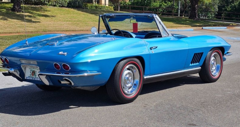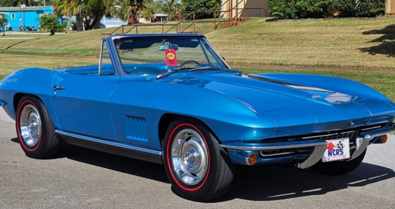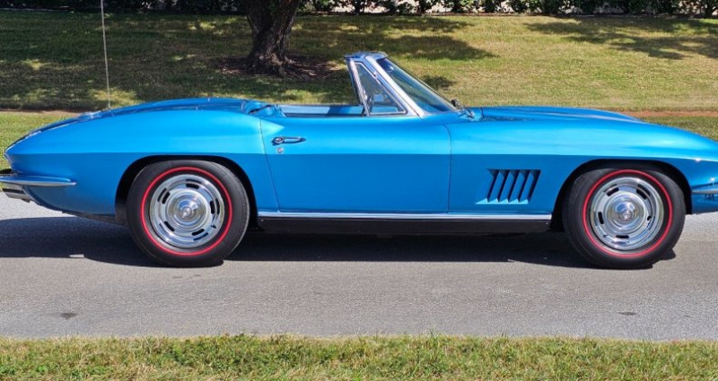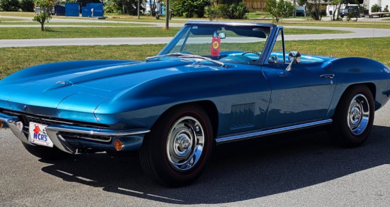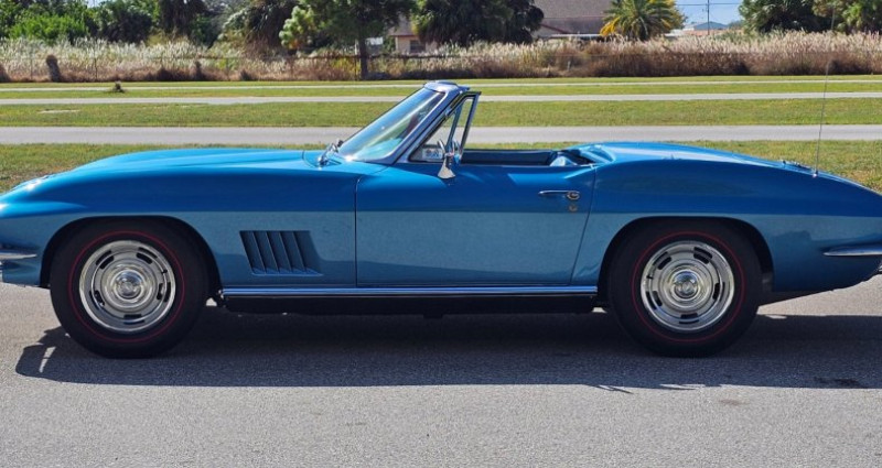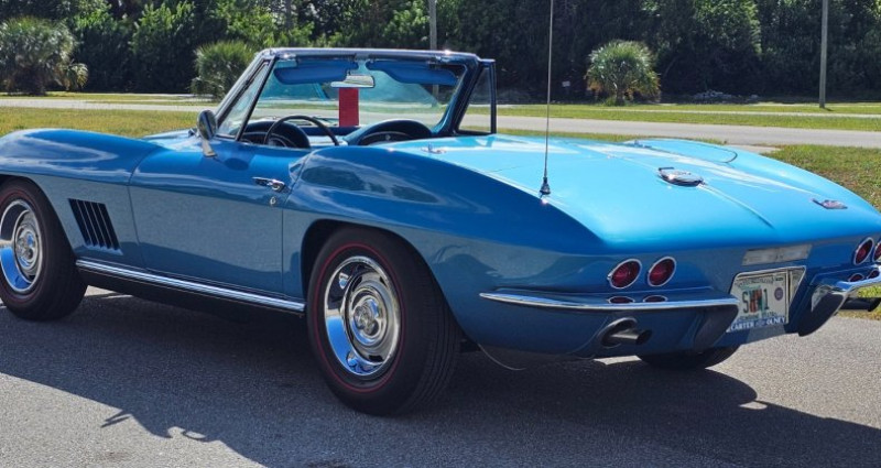 Le véhicule en question est un 1967 Chevrolet Corvette Stingray Convertible, restauré entièrement avec une attention détaillée à la restauration de la coque, qui a été certifiée et documentée par Premier Investment. Sa peinture est en code 976 Marina Blue et son intérieur en code 415 Bright Blue. Cette voiture possède un moteur de 327 chevaux, une transmission M-21 à quatre vitesses et un pont arrière Posi - traction. Tous les éléments de la coque de la voiture, y compris les étriers de lien, sont intacts et le rapport des parties est excellente. Le moteur, la transmission et le pont arrière sont tous fabriqués pour cette Corvette, comme le prouvent les écritures de carrosserie et de finition. La voiture vient avec l'étiquette de réservoir original et l'étiquette de vitre. Le journal de restauration comprend des receipts de restauration détaillés. L'aspect de la peinture est remarquable, tandis que l'intérieur, le chromage, la jointure et tous les composants de l'intérieur sont magnifiques. La voiture est équipée de roues de rallye correctes (en condition presque neuf) avec roues en bandes rouges. Tout fonctionne dans la voiture, y compris toutes les jauges. Elle roule et fonctionne parfaitement, prête à basculer le toit et déambuler. Il n'est rien à faire à la voiture. Il existe huit vidéos détaillées de la voiture et plus de 140 photos pour la consultation sur notre site web [Floridacorvetteexchange.com](http://Floridacorvetteexchange.com). Pour d'autres vidéos, vous pouvez me texter à [386-237-8902](tel:3862378902) et je vous les envoie. Je suis désolé, car les vidéos sont trop lourdes pour être transmises par courrier électronique. Nous sommes heureux de vous aider avec le financement et le transport de toutes nos voitures de collection, simplement textez-moi votre code postal pour recevoir un devis! [386-237-8902](tel:3862378902) Si vous avez des questions, n'hésitez pas à me contacter à tout moment ! Merci de votre attention !. Ce descriptif est basé sur les éléments communiqués par le propriétaire avec un traitement assisté. Merci pour votre indulgence en cas de formulation perfectible. Provenance : Florida. Disponibilité : 7 semaines, clés en main. 84 000 € tout compris (importation, taxes, procédure d'immatriculation). Annonce publiée le 08/10/2025