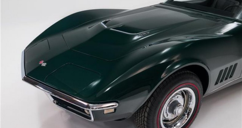 Cet automobile de collection est un Chevrolet Corvette de 1968 de couleur British Green sur intérieur noir, qui a subi une restauration complète en demi-chassis. Le moteur est un V8 de 427 pouces cubes de puissance 435 ch, relié à une transmission manuelle à 4 vitesses. L'intérieur comprend de nouvelles pièces molles tout au long, des sièges reconstruits, tapis, une nouvelle capote molles, et un tableau de bord remis en état. Les instruments sont en bon état de marche et la radio fonctionne également. Le véhicule a été abaissé à la fibre de verre, est peint en deux tons, et a été revu par un contrôle qualité. Le verre est teinté Soft Ray et vous trouverez des éléments chromés et inoxydables restaurés sur l'extérieur. Toutes les pièces en caoutchouc sont nouvelles ! Le châssis de la Corvette est détaillé à l'extrême. En attendant que le corps soit démonté du châssis, ce dernier a été passé dans un bain de sable et refini dans la couleur GM noire. Toutes les pièces de suspension ont également été ébarbouillées et peintes, puis reconstruites avec des composants neufs. Le système de freinage a également été reconstruit, y compris les calipers, les tuyaux, les étui de tuyaux, et un système de freinage a été installé. C'est un véhicule divertissant et très utilisable, qui a été restauré pour concours plusieurs années plus tôt. Si vous cherchez un véhicule restauré et utilisable, n'hésitez pas à vous y intéresser. Cette voiture est actuellement disponible dans notre salle d'exposition et est également publicitée dans d'autres formats.. Ce descriptif est basé sur les éléments communiqués par le propriétaire avec un traitement assisté. Merci pour votre indulgence en cas de formulation perfectible. Provenance : Missouri. Disponibilité : 7 semaines, clés en main. 91 000 € tout compris (importation, taxes, procédure d'immatriculation). Annonce publiée le 21/10/2025