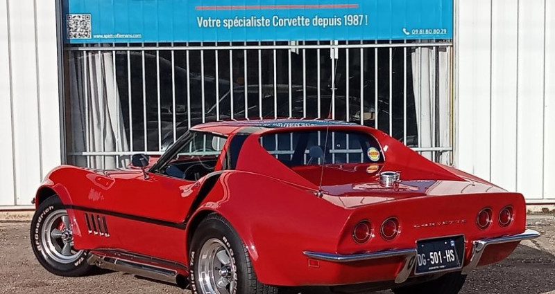 Chevrolet Corvette Stingray coupe 1968, V8 327ci 350cv matching number, boite manuelle 4, direction assistée, freins à disques assistés, jantes Américan Racing Torq Thrust D, radiateur aluminium Dewitts avec ventilateur électrique, carburateur Edelbrock 500, admission Dart, filtre à air KN, échappements latéraux 4 en 1 inox, trains roulant complet, pont, cardans, freins avant et arrière Wilwood, électricité refaite, intérieur restauré, etc. Très gros chantier réalisé avec factures et historique.Rapport d'expert. Couleur Rally red intérieur noir. Données supplémentaires -