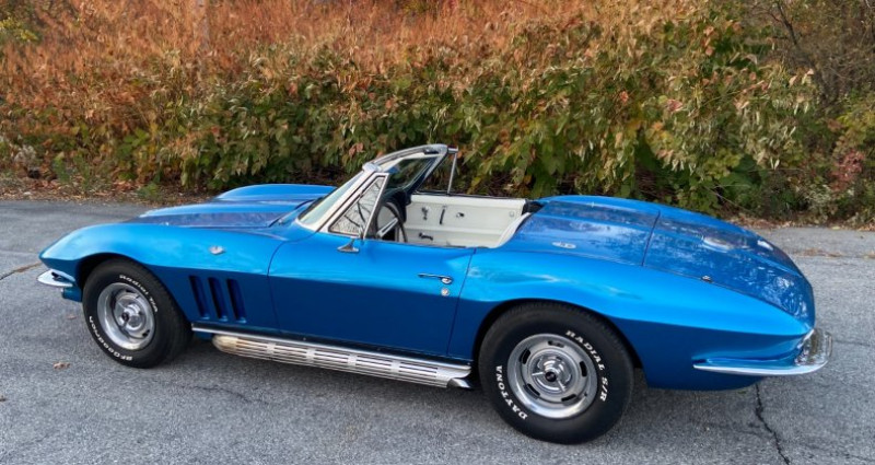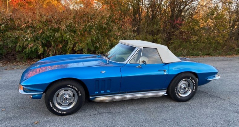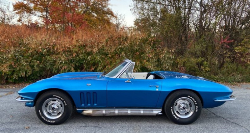 Ce 1966 Chevrolet Corvette Convertible, équipé d'un moteur V8 de 327 cubic inches et d'une boîte de vitesses manuelle à 4 rapports, se présente comme un véhicule de qualité de conduite supérieure. La peinture bleu Nassau est en parfait état et possède une belle lustre et gloss. L'intérieur montre bien, les sièges sont en très bon état et les tapis et tableau de bord sont propres et conservés. Les jauges, feux et signalisation tournent correctement. Cette Corvette n'est pas destinée aux puristes, c'est une excellente exemple de voiture de conduite agréable et conviviale, sans aucun coût élevé. Le véhicule est équipé d'une voie arrière neuve installée il y a quelques années et fonctionne très bien. Cette voiture roule, conduit et gère bien sur route sans surprises. Elle est très riche et facile à conduire pour n'importe quel pilote, de taille ou d'âge. L'état général de ce véhicule rarissime est excellent pour un usage quotidien.. Ce descriptif est basé sur les éléments communiqués par le propriétaire avec un traitement assisté. Merci pour votre indulgence en cas de formulation perfectible. Provenance : Pennsylvania. Disponibilité : 7 semaines, clés en main. 52 000 € tout compris (importation, taxes, procédure d'immatriculation). Annonce publiée le 08/11/2025