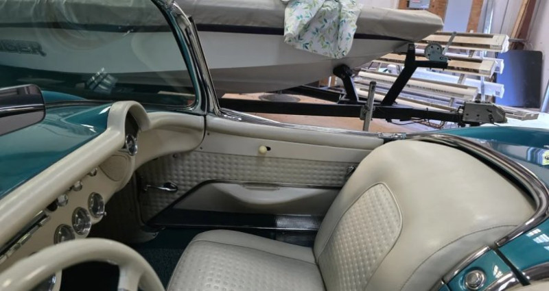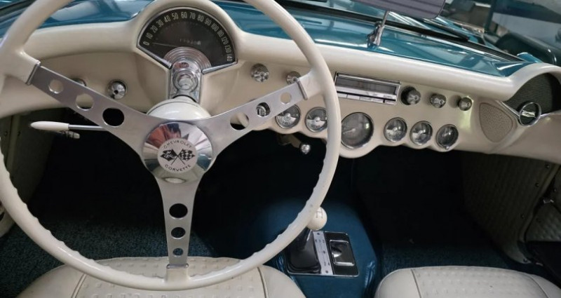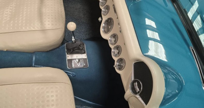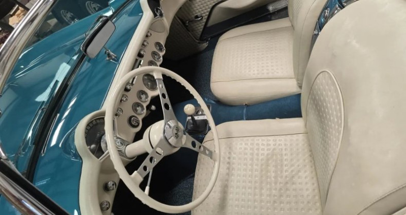 Cet automobile est une reconstituée de 1956 Chevrolet Corvette, de couleur aqua teal et blanche. Son moteur est un V8 de 265 cubic inches, équipé d'une boîte de vitesses à trois rapports. Ce véhicule a récemment été récompensé avec le prix du meilleur de l'exposition lors de deux concours automobiles consécutifs. La voiture a fait 1 500 miles sur l' moteur restauré et possède des pneus neufs. Toutes les parties chromées ont été réparées, offrant un aspect irréprochable. La voiture possède également un toit rigide blanc que l'on pourrait peindre en aqua teal, ainsi qu'un toit mousseux blanc.. Provenance : CA, USA. Disponibilité : 7 semaines, clés en main. 100 500 € tout compris (import, taxes, procédure d'immatriculation). Annonce publiée le 12/11/2025