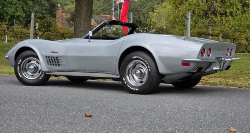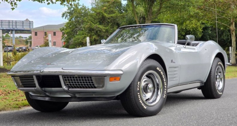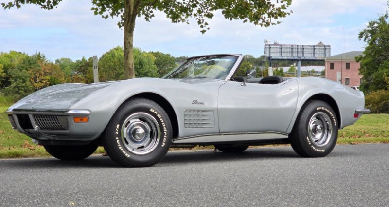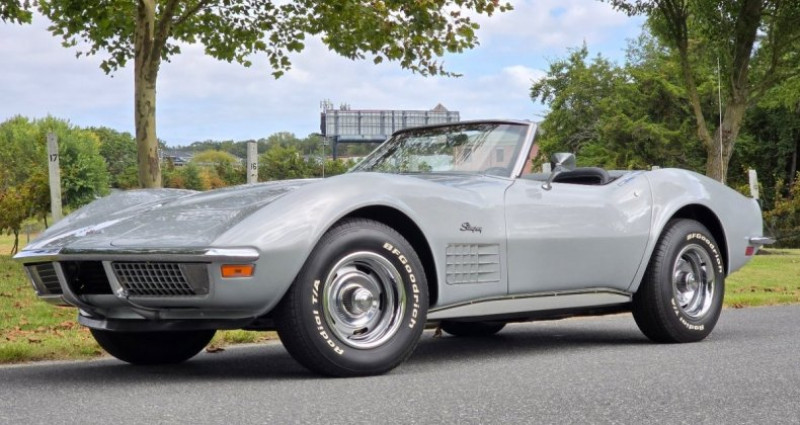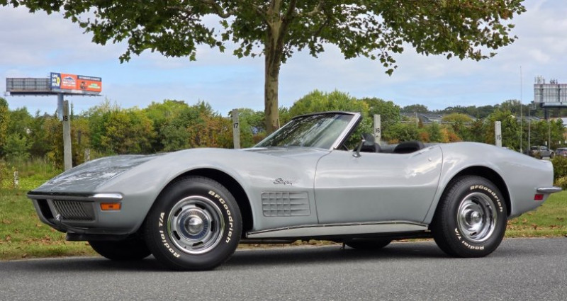 Cet automobile 1970 Chevrolet Corvette est un cabriolet argent-noir équipé d'un moteur V8 L46 de 350 ci associé à une boîte de vitesses manuelle à quatre rapports. La voiture est dotée d'une différentielle Positraction limitée-glissement, d'une toit molle noire, des roues Rally de 15 pouces, des freins à disques, un volant à direction assistée, des phares repliables et un système audio AM/FM.Le véhicule est fini en Cortez Silver (986) et est équipé d'une toit molle, de phares remarquables qui s'ouvrent et ferment automatiquement, de deux grilles avant, de perforations aux flancs, de quatruples feux arrière, et de deux sorties d'échappement rectangulaires. Les roues Rally de 15 pouces sont montées avec des pneus BFGoodrich Radial T/A de 235/70. Le freinage est assuré par des disques ventilés à chaque coin et la voiture est équipée de direction assistée.Les sièges baquet sont en noir et la cabine dispose d'un chauffage de cabine et d'un système audio AM/FM. Le volant à trois branches est monté sur un socle qui peut être rabattu et déplacé, et cadre un panneau d'instrumentation comprenant un compteur de vitesse à 160 mph et un tachymètre. Une montre et des indicateurs additionnels sont montés dans la plate-forme centrale. L'odomètre à cinq chiffres montre 67k miles, environ 1k desquels ont été ajoutés sous la propriété actuelle.Le moteur V8 L46 de 350 ci a été fabriqué en usine à 350 chevaux et 380 livres-pieds de couple. La puissance est transmise aux roues arrière via une boîte de vitesses manuelle à quatre rapports et une différentielle Positraction limitée-glissement.L'analyse de la finition donne les informations suivantes :Date de production A20 - production en janvier 20Trim 400 - noir cuirPeinture 986 - Cortez Silver. Ce descriptif est basé sur les éléments communiqués par le propriétaire avec un traitement assisté. Merci pour votre indulgence en cas de formulation perfectible. Provenance : Delaware. Disponibilité : 7 semaines, clés en main. 47 000 € tout compris (importation, taxes, procédure d'immatriculation). Annonce publiée le 13/11/2025