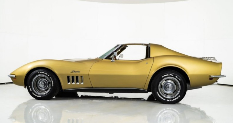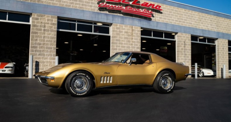 1969 Chevrolet Corvette, Stock #: X37168, Riverside Gold exterior, Saddle interior, Coupe body type, 3 Speed TH400 Automatic transmission, 350 C.I. V8 engine, 3.08 limited-slip rear end, Mileage: 35, 241, Vehicle Original VIN : 194379S738696, power steering, 4-wheel power disc brakes, power windows, air conditioning, two sets of T-tops, 15-inch Corvette Rally wheels, raised white-letter tires, equipped with power steering, 4-wheel power disc brakes, power windows, and air conditioning, tilt-and-telescopic steering column. Provenance : Missouri. Disponibilité : environ 7 semaines, clés en main. 45 000 € tout compris (importation, taxes, procédure d'immatriculation). Annonce publiée le 24/11/2025