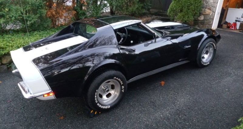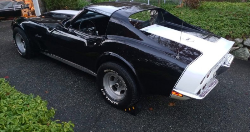 1973 Corvette Coupe, 454 4spd, black with black interior, rebuilt 454 motor, hydraulic lifters, roller rockers, mild cam, Baldwin motion paint job, replaced interior, brand new mirror glass t-tops, power steering, tilt and telescopic steering, factory AC (missing compressor), original AM FM radio, rear chrome bumpers like new, extensive restoration, clean bird cage and frame, clean title, recently inspected, asking $17, 900, options include power steering and factory AC. Options do not include domestic or international shipping, overseas buyers welcome. No payment through eBay, only bank wire or cash in person.. Provenance : New Jersey. Disponibilité : environ 7 semaines, clés en main. 24 500 € tout compris (importation, taxes, procédure d'immatriculation). Annonce publiée le 27/11/2025