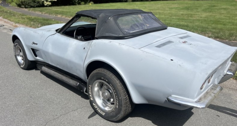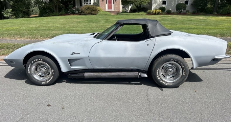 1973 Corvette Convertible • Original matching number 350 engine • PS, PB, PW, tilt/tele column • Factory air conditioning (most A/C stuff missing) • Factory side exhaust • Excellent frame and birdcage • New leather seat covers • Excellent top • Rebuilt turbo 400 automatic transmission • Runs and drives • Rare and one year only code 945 Blue-Green paint • Some gauges not working, headlights or wipers not functioning • Power windows need motors and weatherstripping • Clear title • Needs few things to be roadworthy • Original engine convertible. Provenance : Massachusetts. Disponibilité : environ 7 semaines, clés en main. 17 000 € tout compris (importation, taxes, procédure d'immatriculation). Annonce publiée le 30/11/2025