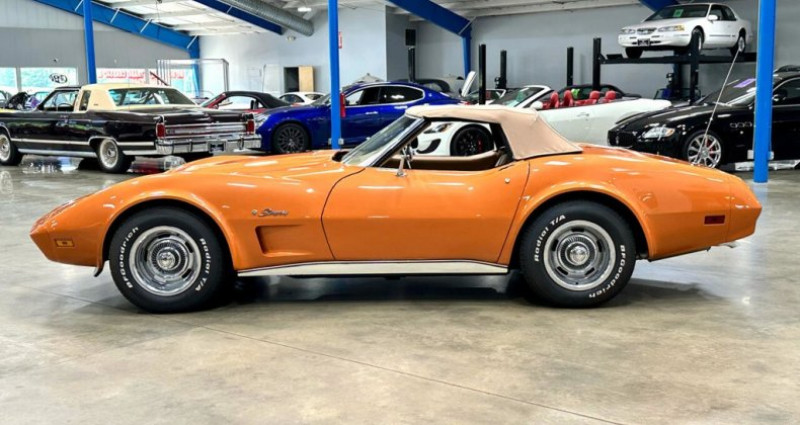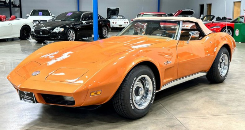 1974 Chevrolet Corvette Stingray Convertible. Moteur inconnu. Boîte mécanique manuelle. Vente en bon état général. Couleur extérieure : Orange. Couleur intérieure : Tan. Empattement propulsion. VIN : 1Z67J4S406927. Mileage : 59648.. Provenance : Ohio. Disponibilité : environ 7 semaines, clés en main. 34 500 € tout compris (importation, taxes, procédure d'immatriculation). Annonce publiée le 01/12/2025