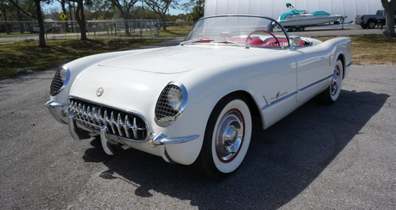 - Vehicle: Chevrolet Corvette - Stock number: 256320 - Exterior color: Polo White - Interior color: Red - Body type: Convertible - Transmission: Automatic - Engine: V-8 - Mileage: 0 (not specified if it's odometer reading or rebuilt odometer) - Vehicle type: Classic - Collection: Ford Family Auto Collection - Location: Englewood, FL - Business type: Family-owned - Focus: Rare, classic, and exotic vehicles - Inventory: Wide variety of classic, antique, and modern vehicles - Emphasis: Classic Chevrolet Corvettes, antique cars, rare and exotic modern vehicles - Consignment option: Available for vehicle owners looking to sell their rare, classic, or exotic cars - Dealership history: Founded by Glenn Rice in 1984, purchased by Rick Ford and sons in 2024 - Payment methods: Cashier's check/money order, institutional financing, and cash in person - Deposit: Non-refundable $1000 deposit within 48 hours of winning the auction - Terms and conditions: Subject to change, verification of vehicle details required before purchase, no warranties provided, mileage may vary, fees and taxes apply, auction may end early.. Provenance : Florida. Disponibilité : environ 7 semaines, clés en main. 40 000 € tout compris (importation, taxes, procédure d'immatriculation). Annonce publiée le 03/12/2025