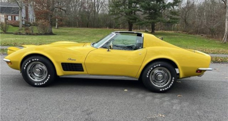 - Marque : Chevrolet - Modèle : Corvette Stingray - Année : 1972 - Type de carrosserie : T-Top Coupe - Couleur extérieure : Jaune vif - Couleur intérieure : Noir - État général : Excellent - Condition de la peinture : Immaculé, brillant, finition lisse - Transmission : Automatique - Kilométrage : 93 512 - Documentation : Inclut la feuille de données de fabrication originale - Équipement : T-tops removables, conduite agréable, prêt à être utilisé immédiatement pour des croisées de fin de semaine ou pour des concours locaux.. Provenance : Massachusetts. Disponibilité : environ 7 semaines, clés en main. 29 500 € tout compris (importation, taxes, procédure d'immatriculation). Annonce publiée le 03/12/2025