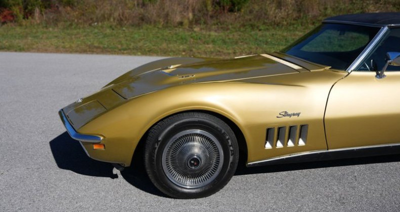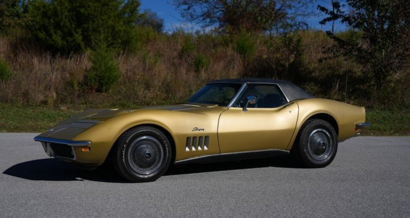 - Marque : Chevrolet - Modèle : Corvette - Type : Convertible - Année : 1969 - Moteur : 427 ci / 390 ch moteur V8 à grande culasse (original et numéroté) - Boîte de vitesses : M40 automatique (original et numéroté) - Couleur extérieure : Riverside Gold (Code 980) - Couleur intérieure : Cuir noir (Code 402) - Kilométrage : 98 572 miles (kilométrage réel) - Documentation : Warranty booklet, Protect-O-Plate, facture de vente, Corvette C3 Registry printout (documentation complète). Provenance : , USA. Disponibilité : environ 7 semaines, clés en main. 48 500 € tout compris (import, taxes, procédure d'immatriculation). Annonce publiée le 03/12/2025