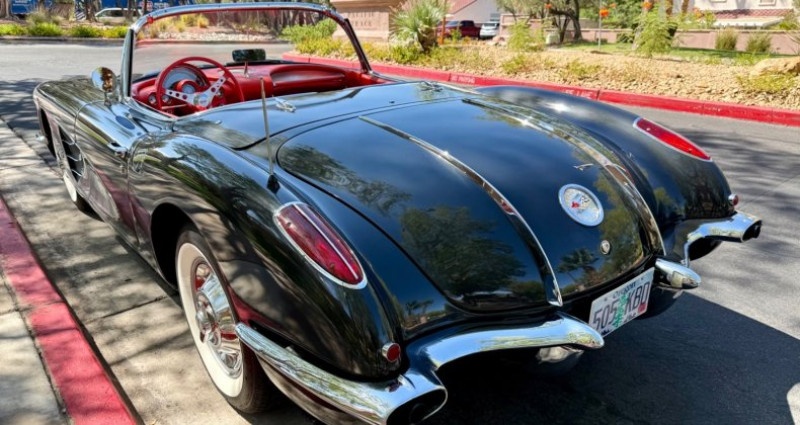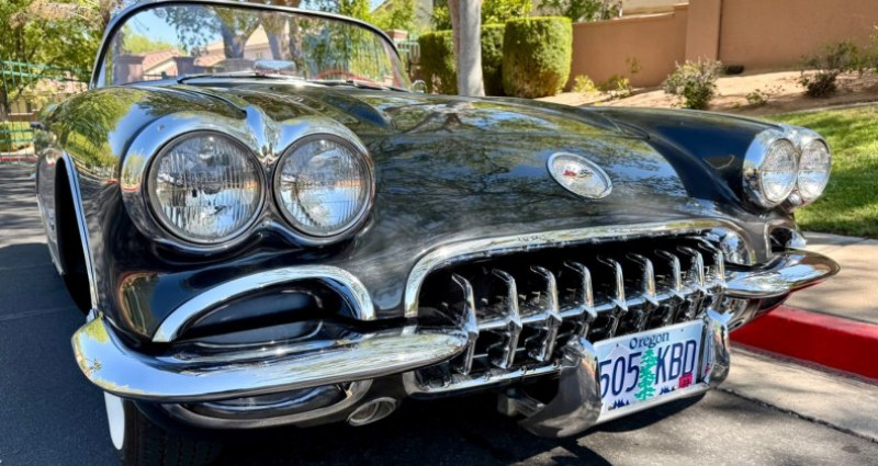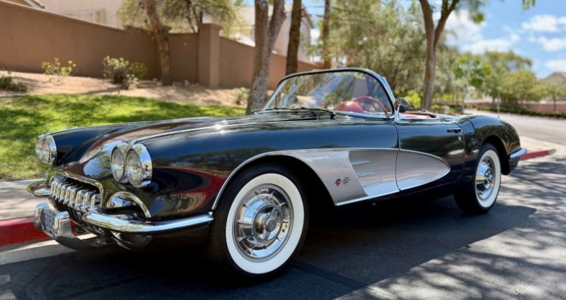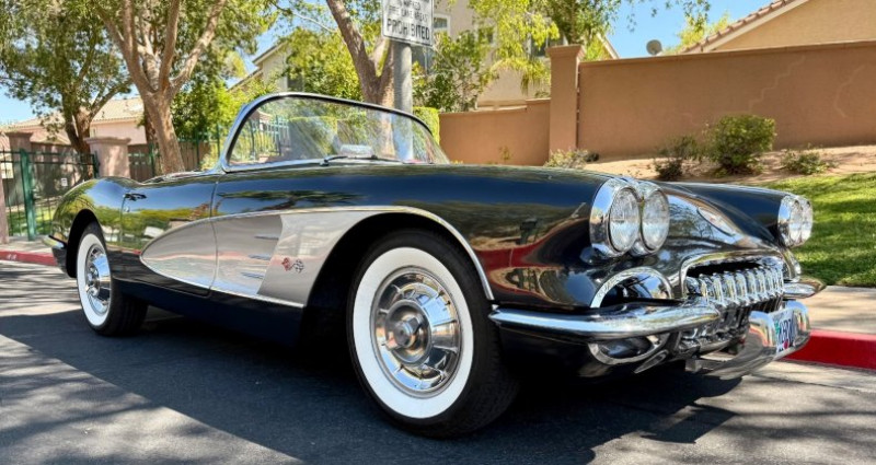 - Année : 1958 - Marque : Chevrolet - Modèle : Corvette - Moteur : 283 (puissance initiale de 270 ch, soufflerie solide, reconstruit) - Boîte de vitesses : 4 vitesses à rapports serrés (reconstruit) - Kilométrage : 66 000 miles (vérifié) - État de la carrosserie : Excellent - État de l'intérieur : Excellent - Couleur : Charbon avec coves Inca Silver - Accessoires : Toit rigide et toit doux en excellente condition inclus. Provenance : Nevada. Disponibilité : environ 7 semaines, clés en main. 127 500 € tout compris (importation, taxes, procédure d'immatriculation). Annonce publiée le 04/12/2025