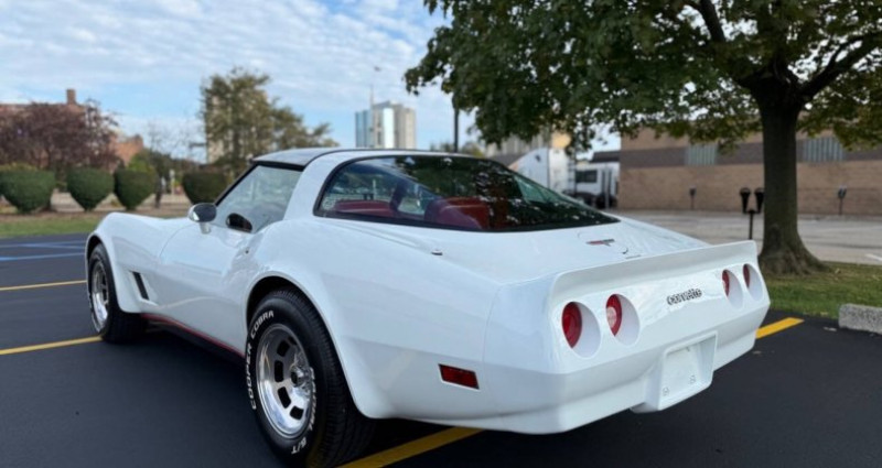 - Marque : Chevrolet - Modèle : Corvette - Année : 1980 - Couleur extérieure : Blanc - Couleur intérieure : Rouge - Type de carrosserie : Coupe - Transmission : Automatique - Type d'essence : Essence - Moteur : V8 5.7L - Kilométrage : 15 144 miles (environ 24 240 km). Provenance : Michigan. Disponibilité : environ 7 semaines, clés en main. 35 000 € tout compris (importation, taxes, procédure d'immatriculation). Annonce publiée le 05/12/2025