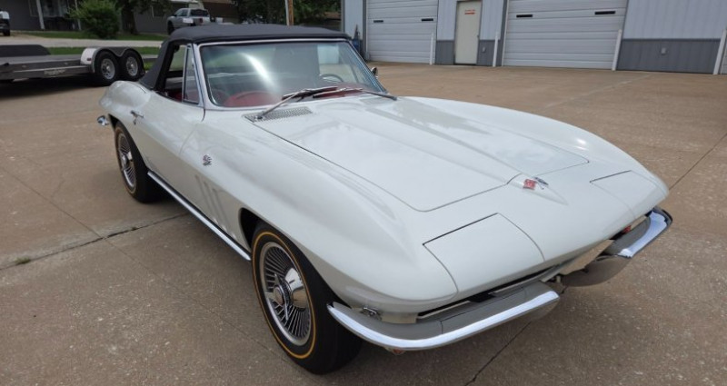 - Année : 1965 - Modèle : Corvette - Moteur : L79 327/350HP - Boîte de vitesses : Non spécifié - Transmission : Non spécifiée - Options : direction assistée, freins assistés, roues à cloche Knock Offs avec lignes dorées, sièges en cuir - Couleur extérieure : Ermine Blanc - Couleur intérieure : Rouge - État : Restauré nut et bolt frame off - Kilométrage : Non spécifié. Provenance : Missouri. Disponibilité : environ 7 semaines, clés en main. 90 000 € tout compris (importation, taxes, procédure d'immatriculation). Annonce publiée le 05/12/2025