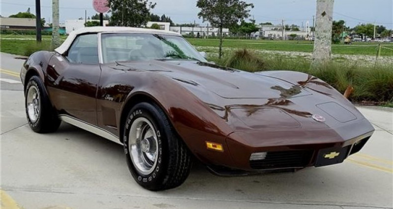 - Marque : Chevrolet - Modèle : Corvette - Type : Convertible - Année : 1974 - Couleur extérieure : Brown Poly - Couleur intérieure : Saddle Tan Leather - Moteur : CLR Engine - Cylindrée : 350 cubic inch - Puissance : 250 HP - Boîte de vitesses : 4 vitesses manuelle - Toit : White manuel, facile à monter et à descendre - État général : en bonne condition avec quelques imperfections mineures - Vidéo : disponible en lien - Transmission : disponible en lien pour visionner les photos (plus de 50). Provenance : Florida. Disponibilité : environ 7 semaines, clés en main. 24 000 € tout compris (importation, taxes, procédure d'immatriculation). Annonce publiée le 06/12/2025