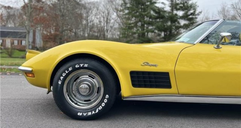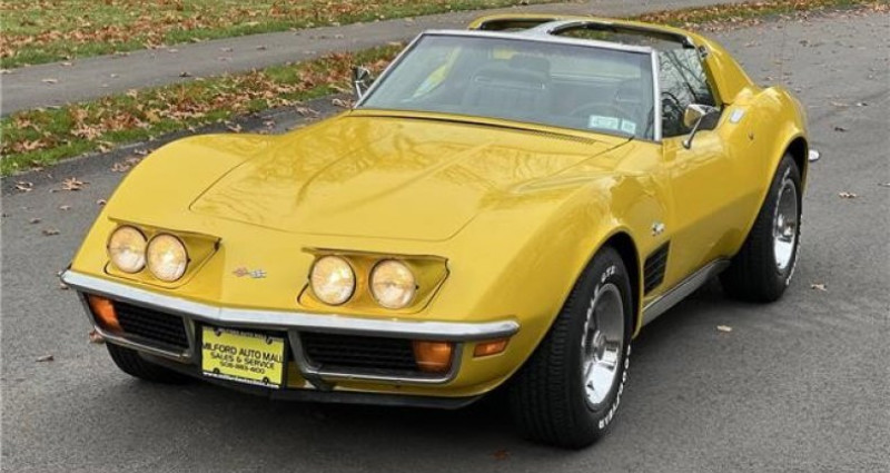 - Marque : Chevrolet - Modèle : Corvette Stingray - Année : 1972 - Type de carrosserie : T-Top Coupe - Couleur extérieure : Jaune - Couleur intérieure : Noir - Transmission : Automatique - Kilométrage : 93 512 - État : Excellent - Travaux : Rarement utilisé, soigneusement conservé - Documentation : Inclut la feuille de données de la fabrication originale. Provenance : Massachusetts. Disponibilité : environ 7 semaines, clés en main. 29 500 € tout compris (importation, taxes, procédure d'immatriculation). Annonce publiée le 06/12/2025