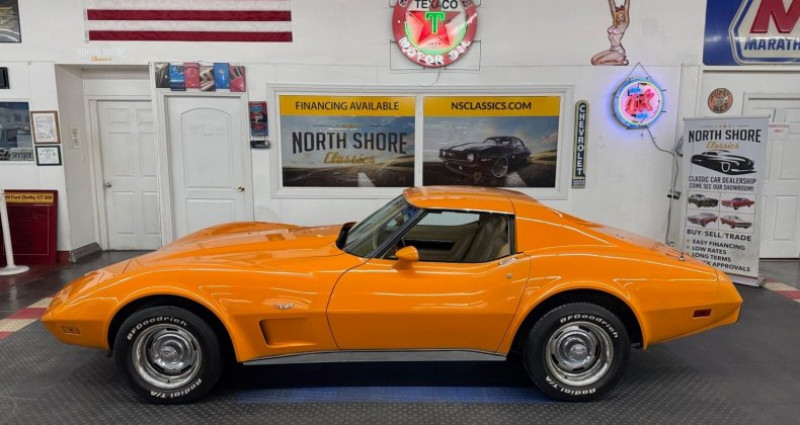 - Marque : Chevrolet - Modèle : Corvette - Année : 1977 - Stock : 77755RGCV - Couleur extérieure : Orange - Couleur intérieure : Beige/Tan - Boîte de vitesses : 4 vitesses manuelle - Moteur : 350 c.i. (cubic inches) - Puissance : 300 ch - Kilométrage : 82 192 miles - Suspension : Nouvelle - Freins : Nouveaux - Pare-brise T Tops - Steering : Puissance - État général : Qualité conducteur - Intérieur : Carpets du conducteur nécessite remplacement - Marche et fonctionne bien - Financier possible - Numéro de téléphone du vendeur : 847-393-7887. Provenance : Illinois. Disponibilité : environ 7 semaines, clés en main. 24 500 € tout compris (importation, taxes, procédure d'immatriculation). Annonce publiée le 08/12/2025