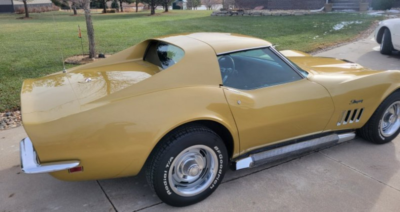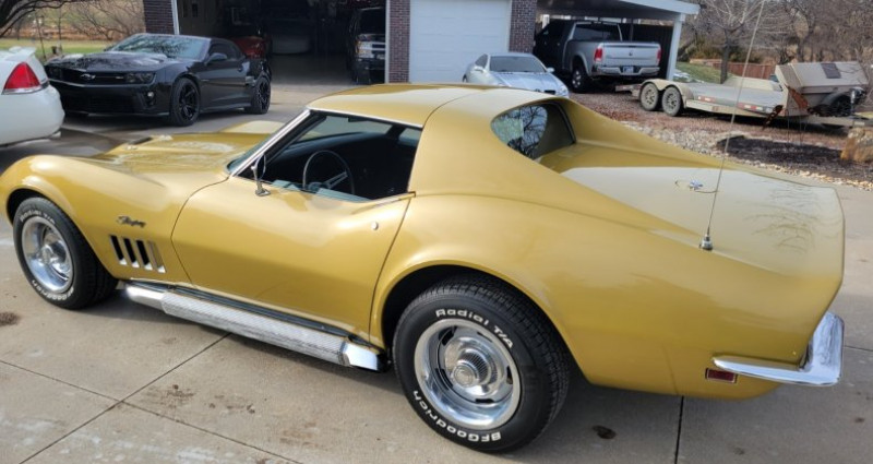 - Marque : Corvette - Modèle : Coupe - Année : 1969 - Moteur : 427 - Puissance : 390HP - Boîte de vitesses : 4 vitesses - Échappements : échappements latéraux de fabrication - Couleur : Riverside Gold (originale) - État général : vie très soignée, tout fonctionne correctement (tous les fibres optiques, éclairages, commandes etc.) - Moteur remplacé : 454 - Châssis solide, cage oiseau. Provenance : Nebraska. Disponibilité : environ 7 semaines, clés en main. 44 500 € tout compris (importation, taxes, procédure d'immatriculation). Annonce publiée le 12/12/2025