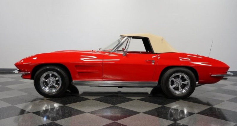 - Marque : Chevrolet - Modèle : Corvette - Année : 1963 - Type de carrosserie : Cabriolet - Couleur extérieure : Rouge Riverside - Couleur intérieure : Rouge - Moteur : 350 V8 ZZ4 - Boîte de vitesses : 4 vitesses manuelle - Transmission : RWD - Kilométrage : 99 172 miles - Roues : 15 American Racing - Intérieur : Siège baquet, tableau de bord original, cassette AM/FM - État général : Bien conservé, fonctionne bien - VIN original : 30867S115797. Provenance : North Carolina. Disponibilité : environ 7 semaines, clés en main. 65 500 € tout compris (importation, taxes, procédure d'immatriculation). Annonce publiée le 17/12/2025