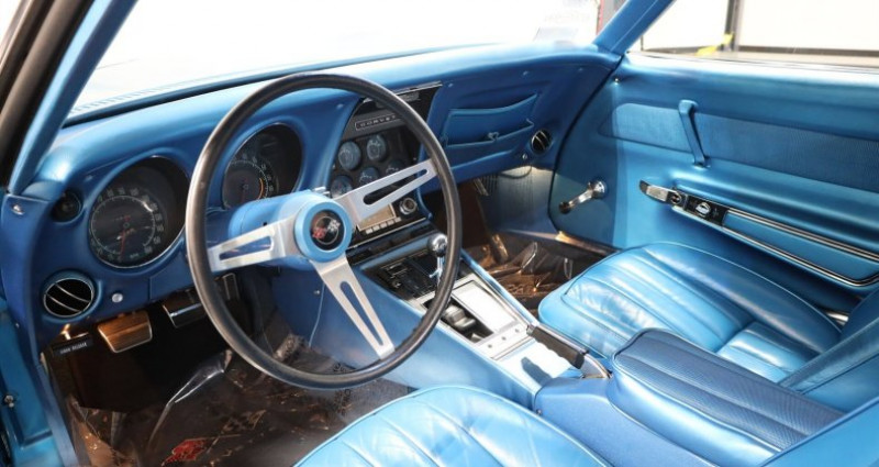 - Couleur extérieure : LeMans Blue - Couleur intérieur : Bright Blue - Mileage : Exempt - 73, 844 - Moteur : 427 - Puissance : 390 HP - Transmission : 4 vitesses manuelle - Titre : Clair - VIN : 194379S701473 - Options : Air conditionné, freinage assisté, direction assistée, roues de rallye avec pneus Redline, pompe à air, échappement latéral - État : Excellent cosmétique, intérieur immaculé, temps capsule. Provenance : Ohio. Disponibilité : environ 7 semaines, clés en main. 72 000 € tout compris (importation, taxes, procédure d'immatriculation). Annonce publiée le 18/12/2025