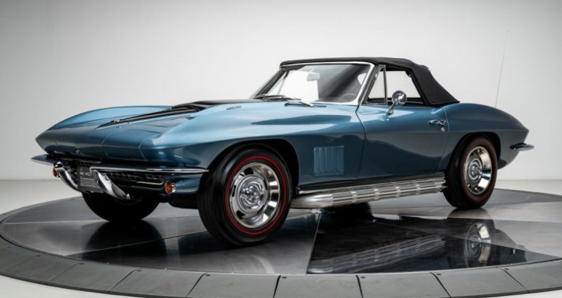 - Marque : Chevrolet - Modèle : Corvette - Type de carrosserie : Cabriolet - Année : 1967 - Moteur : 427 ci V8 - Transmission : Boîte manuelle 4 vitesses - Couleur extérieure : Lynndale Blue - Couleur intérieure : Noir - Mileage : 93 354 miles - Équipements : Tri-Power, freins à disques avant, audio Bluetooth. Provenance : North Carolina. Disponibilité : environ 7 semaines, clés en main. 108 500 € tout compris (importation, taxes, procédure d'immatriculation). Annonce publiée le 19/12/2025