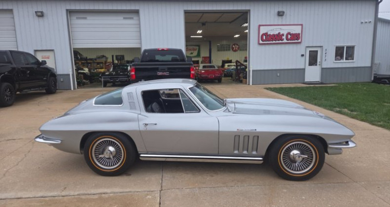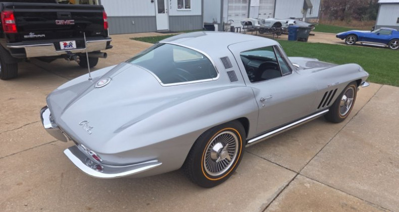 - Année : 1965 - Modèle : Corvette Coupe - Version : 1 sur 771 - Moteur : L84, 327/375HP, Fuelie - Couleur extérieure : QQ Code Silver Pearl - Intérieur : Cuir noir - Roues : Knock Offs avec lignes d'or - État de la peinture : Belle - État de l'intérieur : Nouveau - État de la structure : Sans rouille, cadre et cage aviaire en bon état. Provenance : Missouri. Disponibilité : environ 7 semaines, clés en main. 92 500 € tout compris (importation, taxes, procédure d'immatriculation). Annonce publiée le 22/12/2025