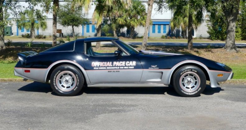 - Marque : Chevrolet - Modèle : Corvette - Année : 1978 - Stock : 1096-TAMPA - VIN : 1Z8748S904365 - Kilométrage : 14 133 miles - Moteur : 350 CID V8 - Boîte de vitesses : 3-vitesse automatique - Couleur extérieure : Noir - Couleur intérieure : Argent - Options : L82 moteur, air conditionné, climatisation, freins à disque avant et arrière, direction assistée, fenêtres électriques, verrouillage centralisé, toit en tissu rabattable, radio AM/FM, roues en alliage, pneus radiaux, sièges en cuir, spoiler arrière, air dams avant, décals officiels de la voiture de course Indy 500.. Provenance : Florida. Disponibilité : environ 7 semaines, clés en main. 39 500 € tout compris (importation, taxes, procédure d'immatriculation). Annonce publiée le 22/12/2025