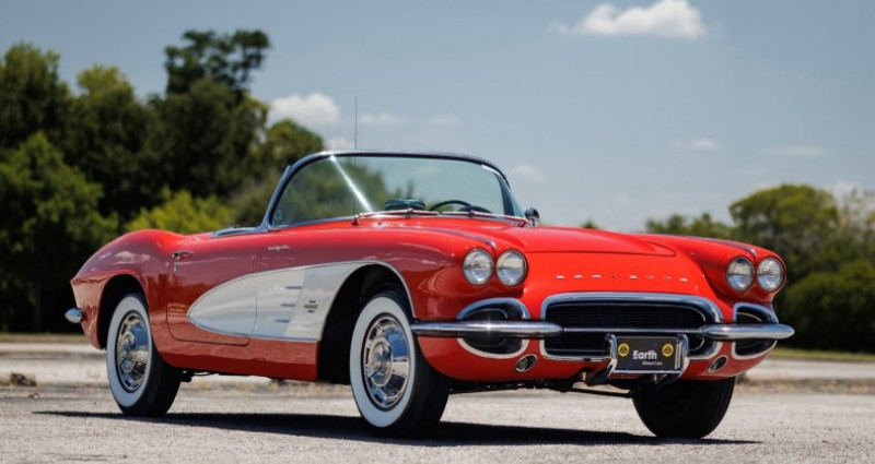 - Marque : Chevrolet - Modèle : Corvette Convertible - Année : 1961 - Moteur : V-8, 283/315 HP - Boîte de vitesses : 4 vitesses manuelle - Couleur extérieure : Rouge Roman - Couleur intérieure : Noir - Transmission : RWD (Traction arrière) - Capot : Rouge avec coves blancs - Pneus : 4 nouveaux Coker Classic WW Bias-Ply Tires 6.70x15 - Kilométrage : 85 805 - Travaux : Restoration complète - Top : White Convertible restauré en bon état - Radio : AM/FM fonctionnel - Manuel d'utilisateur original - Chauffe-bourreau et dégivreur - Bumpers en chrome - Jantes Spinner Wheel Covers - Toit convertible restauré en bon état - Trunk carpété neuf - Previously part of a private Corvette collection - Possible extended warranty (détails à demander à votre représentant commercial). Provenance : Texas. Disponibilité : environ 7 semaines, clés en main. 92 500 € tout compris (importation, taxes, procédure d'immatriculation). Annonce publiée le 23/12/2025