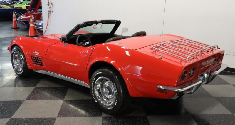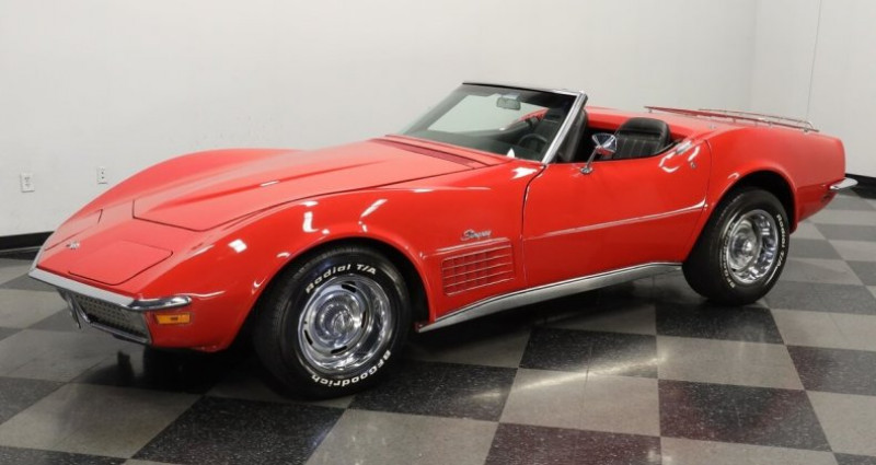 - Marque : Chevrolet - Modèle : Corvette Convertible - Année : 1971 - Couleur extérieure : Rouge - Couleur intérieure : Noir - Type de carrosserie : Cabriolet - Moteur : 350 V8 - Boîte de vitesses : 4 vitesses manuelle Muncie - Freins : 4 roues à disque - Suspension : A-Arm avant avec ressorts à hélice, suspension arrière mono-feuille - Pneus : 235/60R15 avant, 245/60R15 arrière - Toit : Toit manuel en toile noire - Options : Climatisation, volant réglable, fenêtres électriques, radio AM/FM, console centrale avec levier de vitesses au sol, manuels d'entretien, manuel d'exploitation, documents d'origine, roues en chrome de 15 pouces.. Provenance : Florida. Disponibilité : environ 7 semaines, clés en main. 41 500 € tout compris (importation, taxes, procédure d'immatriculation). Annonce publiée le 26/12/2025