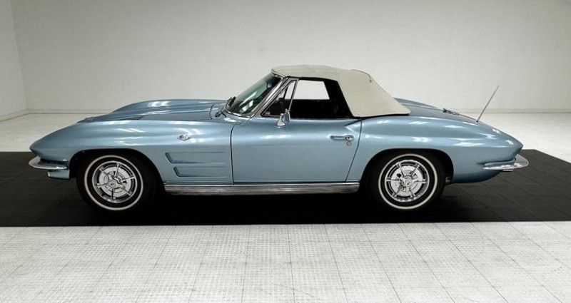 - Marque : Chevrolet - Modèle : Corvette - Type : Convertible - Année : 1963 - Couleur : Silver Blue Metallic - Mise en production : 3, 212 exemplaires en 1963 - Kilométrage : 53, 180 miles (non converti) - Toit : Toit rigide en option - Moteur : 327ci L75 V8, 300 ch - Boîte de vitesses : Muncie M20 4-speed manuelle avec nouvelle chaîne de transmission et pédale de frein - État général : Bon état général, avec quelques imperfections sur la peinture et le métal du toit. Provenance : , USA. Disponibilité : environ 7 semaines, clés en main. 82 500 € tout compris (import, taxes, procédure d'immatriculation). Annonce publiée le 27/12/2025