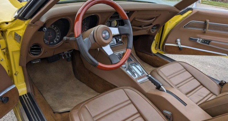 - Marque : Chevrolet - Modèle : Corvette - Année : 1972 - Couleur extérieure : Daytona Yellow - Couleur intérieure : Saddle - Moteur : 350 CID V8 - Boîte de vitesses : 3-vitesse automatique - Transmission : RWD - Kilométrage : 78 724 miles (exempt) - Travaux : Restoration en 2010, réparation moteur, ré-impression en Daytona Yellow, sièges reupholstered en cuir Saddle, équipement : radio AM/FM, freinage et direction assistés.. Provenance : Illinois. Disponibilité : environ 7 semaines, clés en main. 34 000 € tout compris (importation, taxes, procédure d'immatriculation). Annonce publiée le 29/12/2025