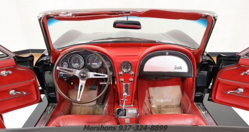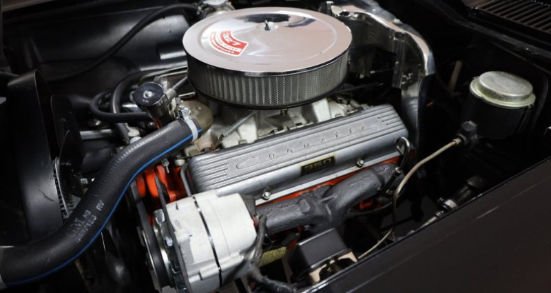 - Couleur extérieure : Noir Tuxedo - Couleur intérieure : Rouge - Mileage : Exempt - 77, 209 - Moteur : 327 350 HP - Carburant : Essence - Boîte de vitesses : 4 vitesses manuelle - VIN : 194676S107173 - Titre : Clair - Casting Number : '3858174' HT Suffix Block - Travaux : Nombreux composants de fabrication originale, y compris l'échappement latéral, la protection d'ignition, l'ensemble de la carrosserie propre et sèche.. Provenance : Ohio. Disponibilité : environ 7 semaines, clés en main. 90 000 € tout compris (importation, taxes, procédure d'immatriculation). Annonce publiée le 29/12/2025