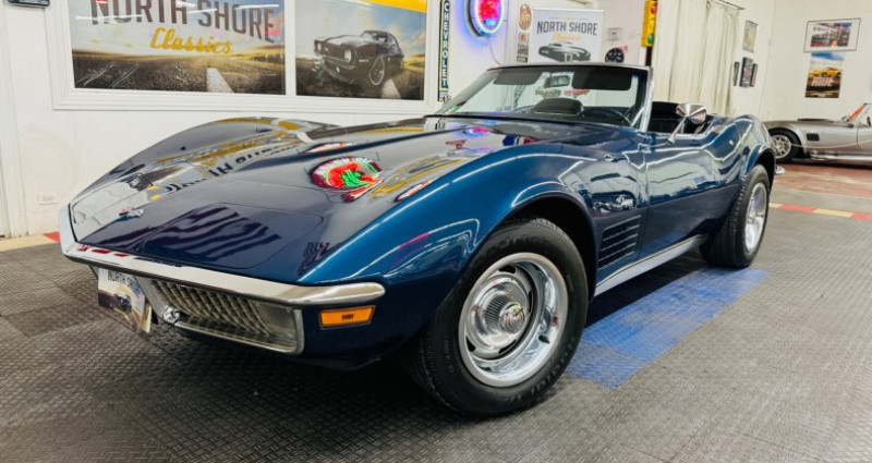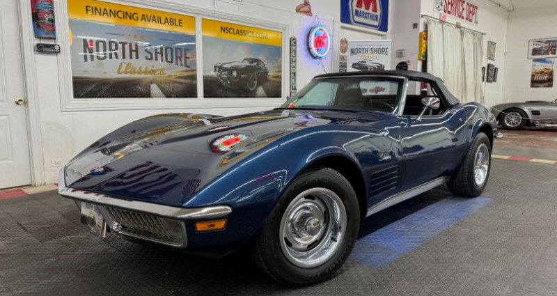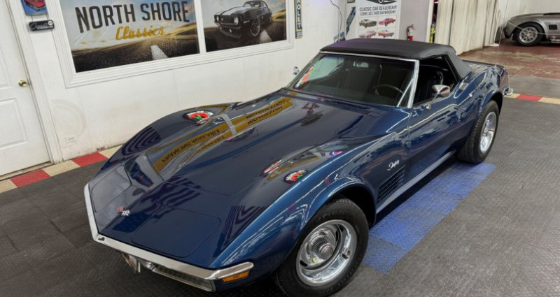 - Marque : Chevrolet - Modèle : Corvette - Type : Convertible - Année : 1970 - Couleur extérieure : Blue (Bridgehampton) - Couleur intérieure : Noir - Transmission : 4 vitesses manuelle (M20) - Moteur : 350 C.I. (L46), 350 ch - Options : C07 - toit rigide supplémentaire, G81 - freinage assisté, J50 - freinage assisté, N37 - colonne de direction réglable et télécommandée, N40 - direction assistée, P02 - jantes de roue de luxe, U69 - radio AM/FM - Kilométrage : 68 510 miles - État : Travaux de restauration complète en printemps 2024. Provenance : Illinois. Disponibilité : environ 7 semaines, clés en main. 67 000 € tout compris (importation, taxes, procédure d'immatriculation). Annonce publiée le 30/12/2025