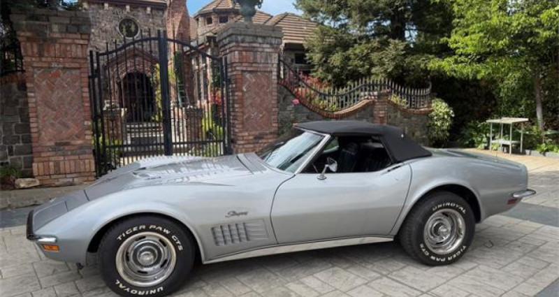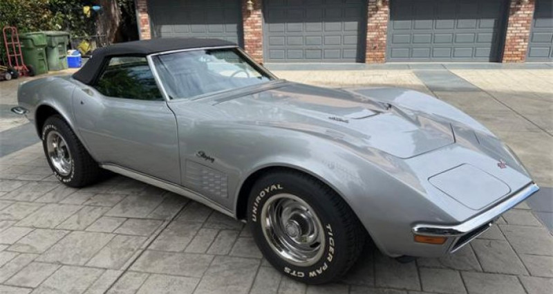 Description du véhicule 1971 Chevrolet Corvette Convertible Stingray. VIN: 194571S104234. Plaque d'immatriculation: 9NTC381. Nevada Silver - Peinture absolument magnifique. Kilométrage: 87,244. Intérieur en excellent état. Extérieur en excellent état. Numéros correspondants. Moteur V8 454-365 HP. Transmission automatique Turbo 400. Climatisation. Freins assistés. Vitres électriques. Nouveau réservoir de carburant. Jantes Rally. Sièges baquets. Vitres teintées. Vitres escamotables. Toit noir - état neuf. Nouveau démarreur. Nouveau volant moteur. Lire la suite. Notre avis: Cette Chevrolet Corvette Stingray cabriolet de 1971 est un excellent exemplaire avec une peinture magnifique et un intérieur/extérieur en excellent état. Elle dispose d'un moteur V8 454-365 HP assorti aux numéros, d'une transmission automatique Turbo 400 et de plusieurs composants neufs, ce qui en fait un conducteur fiable et de haute qualité.