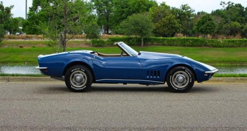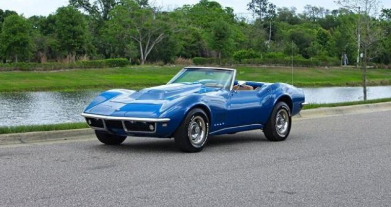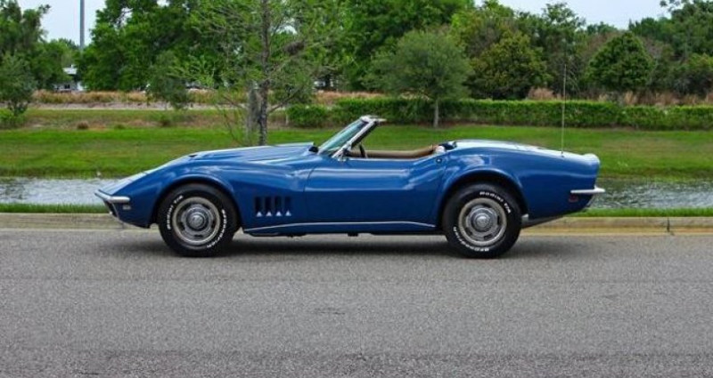 Cette Chevrolet Corvette Cabriolet de 1968, en Targa Blue, offre une expérience de conduite puissante grâce à son moteur big block et sa transmission manuelle à vitesses. C'est un exemple bien préservé d'une voiture musculaire classique, avec un style intemporel et très agréable à conduire.