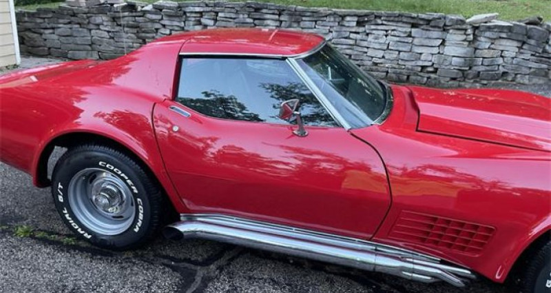 Description du véhicule Corvette 1970, t-tops, manuelle 4 vitesses, nouveaux étriers de frein, disques, nouvelles conduites de frein, nouvelle pompe de direction assistée et conduites hydrauliques, sièges neufs rénovés, nouveaux amortisseurs. Le moteur est un 355 pouces cubes, 795 chevaux à 8700 tr/min sur papier. Les carburateurs sont un pack de 8 Weber. Nouveaux demi-arbres de transmission arrière. Nouveaux pneus, jantes, enjoliveurs de centre de roue, tout est neuf. Notre avis: Cette Chevrolet Corvette de 1970 est présentée comme un excellent 'driver' avec de nombreuses mises à jour récentes. Elle est équipée de freins, d'éléments de direction assistée, de sièges rénovés et d'amortisseurs neufs. Son moteur de 355 ci avec carburateurs Weber et ses pneus et jantes neufs en font un véhicule prêt à prendre la route.