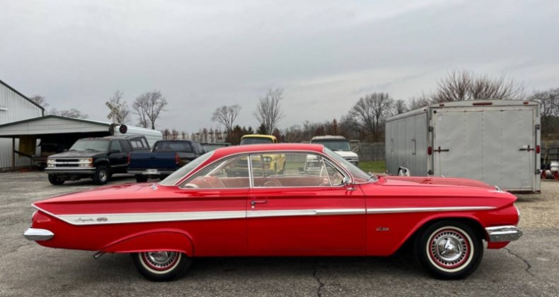 Ce 1961 Chevrolet Impala SS Hardtop 409 est doté d'une transmission manuelle à quatre vitesses et est équipé de freins à disques avant fonctionnant avec un système de freinage original de type maître cylindre. Il est peint en rouge à l'extérieur et en rouge à l'intérieur. Le véhicule dispose d'un moteur V8 avec des quadruples carburateurs. Le moteur a été récemment révisé, bien que les détails de la révision ne soient pas spécifiés. Il ne peut être considéré comme un véhicule original SS en raison du manque de preuve, mais il est en bon état de marche et de conduite. Le véhicule a été équipé d'une transmission T-10 complètement reconstruite en 2010 et dispose d'une série complète de réparations, notamment des pompes de direction, des tuyauteries de direction, la réparation de l'ensemble de la trim, les carburateurs reconstruits, de nouvelles harnais électriques et bien plus encore. Il n'y a pas de réparations de corps ou de ruste détectées. La peinture et l'intérieur sont en très bon état. Le véhicule a subi une restauration complète avant d'être acquisé par le propriétaire précédent en 2010, qui a coûté plus de 30 000 dollars. Le véhicule est en très bon état et apparaît être un excellent exemple de restauration complète. Il est à l'achat sans garantie. Le véhicule est équipé d'un moteur de camion 409 de 1963 de type 425 chevaux, qui est difficile à trouver.. Ce descriptif est basé sur les éléments communiqués par le propriétaire avec un traitement assisté. Merci pour votre indulgence en cas de formulation perfectible. Provenance : Indiana. Disponibilité : 7 semaines, clés en main. 69 500 € tout compris (importation, taxes, procédure d'immatriculation). Annonce publiée le 12/10/2025