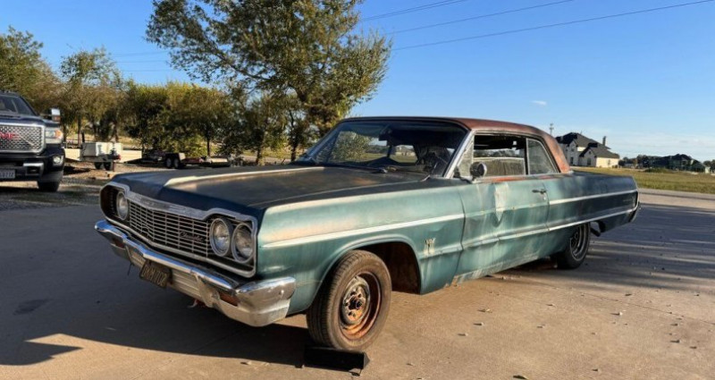 Cet automobile en vente est un Chevrolet Impala de 1964, stock #6518, de couleur turquoise à l'extérieur et à l'intérieur. Il est équipé d'une transmission automatique à 2 vitesses et d'un moteur V8 de 327 chevaux. Le kilométrage indique est de 99 999. Il s'agit d'un véhicule bien conservé, avec la plupart des accessoires, intérieur et système de propulsion. Le patina de la voiture est très bon et elle est un excellent candidat pour devenir un véhicule de conduite ratty. Sa VIN et l'étiquette de la calandre sont intacts. Originaire de l'Oregon, la voiture a passé des décennies dans un dépôt de pièces détachées en Californie. Son certificat d'immatriculation est propre. L'état général de la voiture est de bonne qualité.. Ce descriptif est basé sur les éléments communiqués par le propriétaire avec un traitement assisté. Merci pour votre indulgence en cas de formulation perfectible. Provenance : Texas. Disponibilité : 7 semaines, clés en main. 16 000 € tout compris (importation, taxes, procédure d'immatriculation). Annonce publiée le 13/10/2025