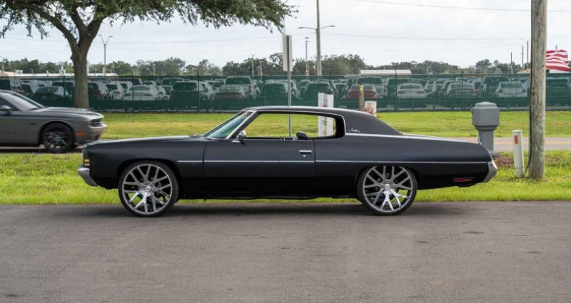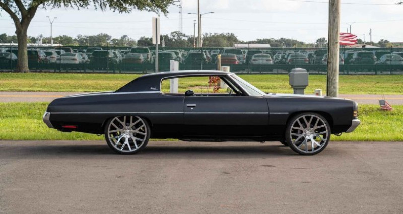 Ce 1972 Chevrolet Impala est un Donk remarquable et ambitieux, qui combine l'imposante présence typique des Chevys de pleine taille avec une conductibilité moderne. Finie en noir, cette voiture est revêtue d'une couche de film adhésif pour offrir une apparence uniforme et élégante. Elle est équipée de roues Cavalo de 24 pouces avec pneus bas-profil offrant un déploiement correct et le bon «look» typique d'un Donk. Le moteur Big Block V8 de 454 ci a été amélioré avec Holley Sniper EFI, ce qui garantit une fiabilité et une tunabilité modernes, tout en assurant des démarrages fiables et une réponse de la pédale d'accélération précise. La transmission automatique Turbo 400 est une excellente paire pour les torqueurs du moteur Big Block, tandis que la boîte de vitesses arrière Impala SS de 1996 avec Posi-traction et 4.11 gears offre une accélération vigoureuse au démarrage. La voiture est équipée d'un système d'air conditionné pour une conduite confortable, ainsi qu'un système de refroidissement à haute performance pour une fiabilité optimale. Cette voiture court la route et fonctionne très bien grâce à des investissements significatifs de l'ancien propriétaire.. Ce descriptif est basé sur les éléments communiqués par le propriétaire avec un traitement assisté. Merci pour votre indulgence en cas de formulation perfectible. Provenance : Florida. Disponibilité : 7 semaines, clés en main. 40 000 € tout compris (importation, taxes, procédure d'immatriculation). Annonce publiée le 17/10/2025
