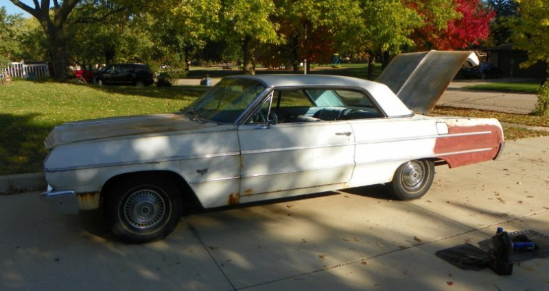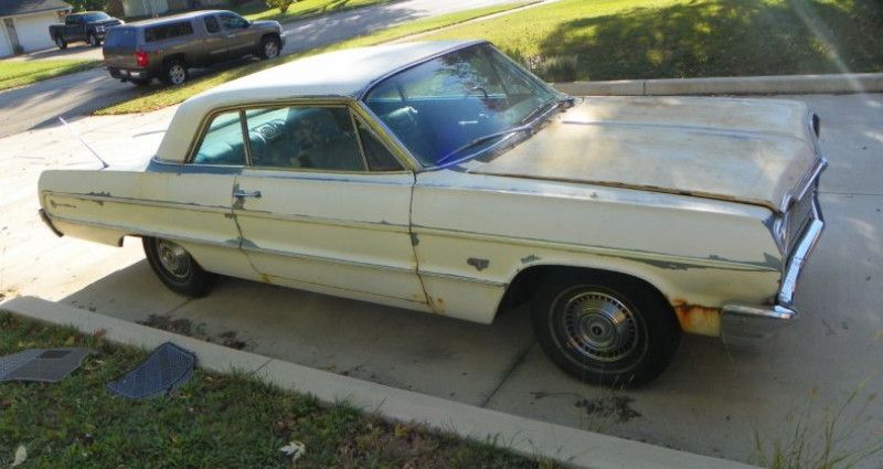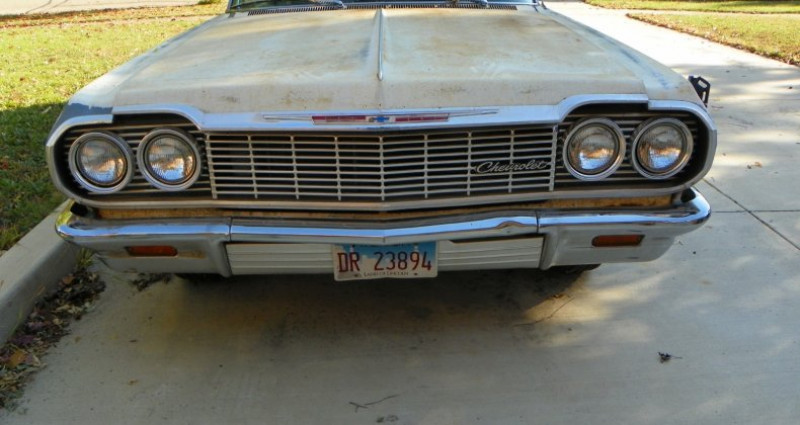 Ce véhicule est un modèle complet de 1964 Impala équipé de son moteur V8 original de 327 cubic inch et de sa transmission automatique originale. Le moteur à quatre carburateurs dispose de système de freinage et de direction motorisée. Le véhicule est à l'allumage et peut être conduit, mais il est préférable de ne pas dépasser les 30 ou 40 miles en raison de la nécessité de travaux sur la partie avant. Durant les deux dernières années, le véhicule a parcouru environ 6 000 miles à des vitesses de circulation ne dépassant pas les 55 miles à l'heure. C'était une voiture californienne initialement de couleur Bleu argent, et elle a reçu une peinture blanche rapidement il y a plusieurs années. Le moteur nécessite des réparations, il utilise de l'huile. Les sols et les braces de sol restent solides, il n'y a pas besoin de les remplacer. Le coffre est très solide, sauf pour trois petites trous de bouton. La voiture a été accidentée sur le côté passager, et des travaux supplémentaires sont encore nécessaires. Il n'y a pas de réparations de rouille sur aucune partie du véhicule. Il s'agit d'une voiture équipée de climatisation fabriquée en usine. Les pièces sont pas montées sur le véhicule, mais elles sont fournies avec lui. Si vous avez des questions, appelez le 630-559-5139.. Ce descriptif est basé sur les éléments communiqués par le propriétaire avec un traitement assisté. Merci pour votre indulgence en cas de formulation perfectible. Provenance : Illinois. Disponibilité : 7 semaines, clés en main. 22 500 € tout compris (importation, taxes, procédure d'immatriculation). Annonce publiée le 05/11/2025