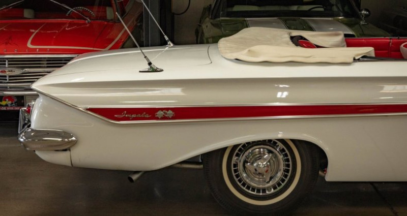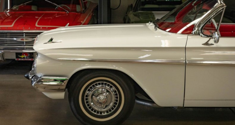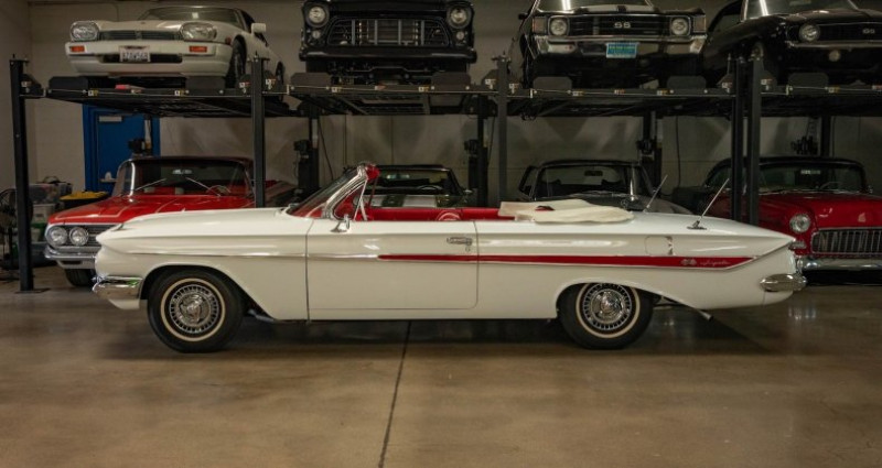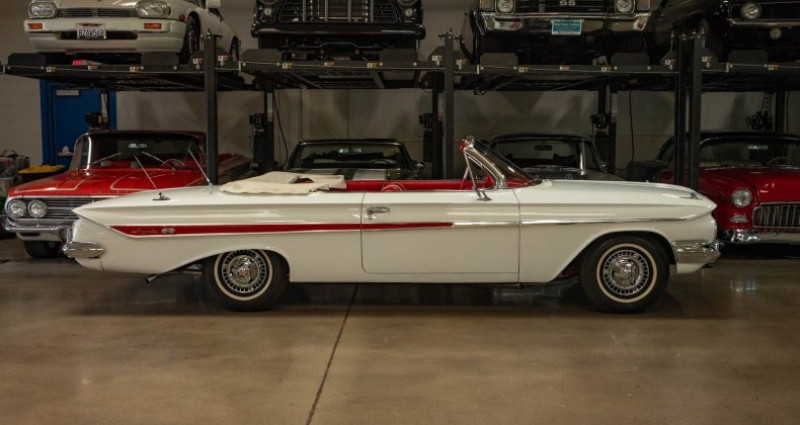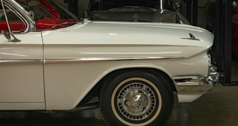 Cet article décrit une Chevrolet Impala SS 1961 de 2 portes cabriolet, exceptionnellement rare et collectible. C'est une voiture équipée d'un moteur V8 348/350HP de 3x2 BBL à injection triple, associé à une boîte de vitesses manuelle 4 rapports. La voiture est peinte dans sa couleur d'origine 'Ermine White' (code 936) et possède un intérieur rouge et blanc (trim code 874) en vinyl, avec un toit en tissu blanc motorisé. Elle dispose également de roues de 14 pouces avec des couvercles de jantes, des pneumatiques blanchis, des bandes latérales, des freins assistés, des directions assistées, d'un compte-tours, d'une poignée d'extraction SS sur le tableau de bord, de verre de toit souple, de ressorts et amortisseurs renforcés, d'une montre électronique et d'un radio AM avec boutons de commande. La voiture a subi une restauration entière, nut et bol, en carrosserie remise au neuf. Elle est rust-free et sa vignette d'usine de carrosserie définit l'option SS, ainsi que la croix de Maltese montée à l'arrière de la poignée d'extraction. Il s'agit de l'une des 453 Super Sport Impalas construites en 1961. Elle dispose également d'un empreinte de moteur TO327FH avec le code de suffixe FH correct de 1961 pour le moteur 348/350HP 3x2BBLS V8 avec boîte de vitesses manuelle, de performances élevées, d'une distribution solide et d'une transmission manuelle 4 rapports. La voiture dispose également d'une direction, d'un toit de cabriolet motorisé, d'une table de bord souple, de couvertures de couvertures, de freins assistés, de directions assistées, de ressorts et d'amortisseurs renforcés, d'une montre électronique et d'un radio AM avec boutons de commande. La voiture a été restaurée entièrement, nut et bol, en carrosserie remise au neuf. Elle est rust-free et sa vignette d'usine de carrosserie définit l'option SS, ainsi que la croix de Maltese montée à l'arrière de la poignée d'extraction. Il s'agit de l'une des 453 Super Sport Impalas construites en 1961.. Ce descriptif est basé sur les éléments communiqués par le propriétaire avec un traitement assisté. Merci pour votre indulgence en cas de formulation perfectible. Provenance : California. Disponibilité : 7 semaines, clés en main. 137 500 € tout compris (importation, taxes, procédure d'immatriculation). Annonce publiée le 06/11/2025