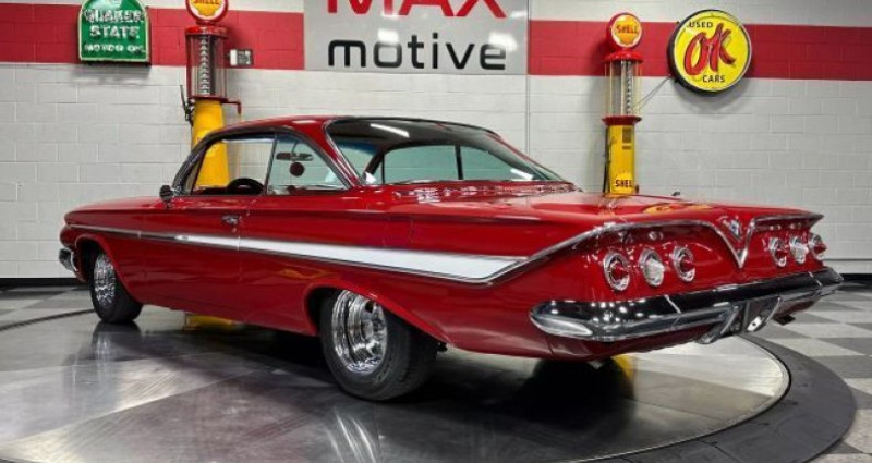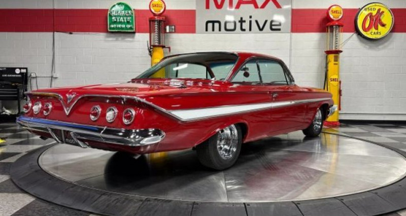 Voici un Chevrolet Impala Sport Coupe de 1961, surnommé « Bubble Top », présenté par MaxMotive. Le véhicule a commencé sa restauration avec une voiture propre de Caroline du Nord en 2020 et a été conduit 2 952 miles depuis. La peinture est une base Montero Red avec cinq couches de vernis. Le moteur est un V8 de 409 ci qui a été surélevé de .030 par les ateliers Bill Kell Racing Engines et équipé de pistons Ross 10:1 et d'un volant Isky solide. Les carburateurs sont des Edelbrock et les culasses sont en aluminium Edelbrock. Les collecteurs d'échappement en céramique de Doug et un système d'échappement double de 2, 5 pouces acheminent la puissance générée par le 409 vers une transmission automatique 700R4 avec un convertisseur de couple à 2 400. La transmission se joint à une boîte US Gear posi arrière avec 3, 70 gears. Des aides à la conduite tels que des tubes d'essieu A-arms renforcés, un barre de torsion frontale renforcé, des ressorts arrière, des pompes à puissance Steering et des freins à disques avant à pompe hydroboost ont été installés pour améliorer la maniabilité. Le véhicule est monté sur des roues Cragar Street Star chromées et des pneumatiques de tourisme Goodyear à dimension décalé. L'intérieur récemment rénové est rouge et blanc en tissu et cuir avec des accessoires tels qu'une climatisation Vintage Air, des tableaux de bord Auto Meter, une poignée de direction Ididit et un lecteur AM/FM stéréo. Oui, ce Chevrolet Impala Sport Coupe de 1961 est un véritable quatre vitesses, à carburateurs doubles et positraction 409 ! Consultez les photos, les vidéos et les détails sur le site web.. Ce descriptif est basé sur les éléments communiqués par le propriétaire avec un traitement assisté. Merci pour votre indulgence en cas de formulation perfectible. Provenance : Pennsylvania. Disponibilité : 7 semaines, clés en main. 88 500 € tout compris (importation, taxes, procédure d'immatriculation). Annonce publiée le 06/11/2025