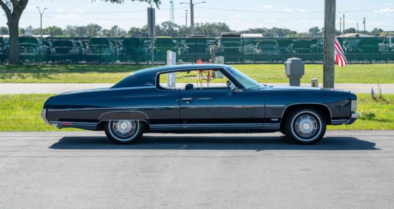 Cet 1971 Chevrolet Impala Custom Coupe est un exemple remarquablement conservé de luxe et de style de début des années 70 chez Chevrolet. Peint en bleu foncé profond et équipé d'un intérieur bleu de la même couleur, cette voiture présente exceptionnellement bien à l'intérieur et à l'extérieur, une voiture propice à la conduite calme et honnête, qui a clairement été soignée toute sa vie. Le moteur est un V8 de 350 cubic inch avec un carburateur à quatre barres, associé à une transmission automatique Turbo 400 pour une performance lisse et fiable. La voiture fonctionne et conduit bien, avec un climatiseur à air froide fabriqué à l'usine qui rend le volant un plaisir, même dans la chaleur de la Floride. Cette Impala a vécu sa vie en Floride et en Géorgie, et cela se ressent, le corps est solide avec aucune rouille, aucun bulles, aucun dommages, et le sous-châssis est propre et sec. L'intérieur est aussi impressionnant, il n'y a aucune tears, rips ou signes de négligence, il conserve sa charme et son confort originaux. Parmi les détails supplémentaires, il y a des ressorts d'air arrière, des pneus blancs avec des gros chapeaux d'origine et un manuel d'utilisateur, ainsi qu'un kilométrage d'82 255 milles, qui sont considérés comme originaux. Globalement, cette Impala Custom Coupe est un véritable capsule du temps, une voiture solide, fiable et dépendable, prête pour la conduite de fin de semaine ou des expositions locales de voitures. Il est difficile de trouver une voiture aussi originale, aussi bien conservée et aussi prête à l'emploi. Bien que nous faisions notre meilleur pour fournir des voitures de muscle de la plus haute qualité avec une description crédible et fiable, nous recommandons vivement de venir visiter notre showroom de Chevelle et de voir cette voiture en personne pour vous assurer que vous êtes heureux avec la voiture avant de l'acheter.. Ce descriptif est basé sur les éléments communiqués par le propriétaire avec un traitement assisté. Merci pour votre indulgence en cas de formulation perfectible. Provenance : Florida. Disponibilité : 7 semaines, clés en main. 41 000 € tout compris (importation, taxes, procédure d'immatriculation). Annonce publiée le 11/11/2025