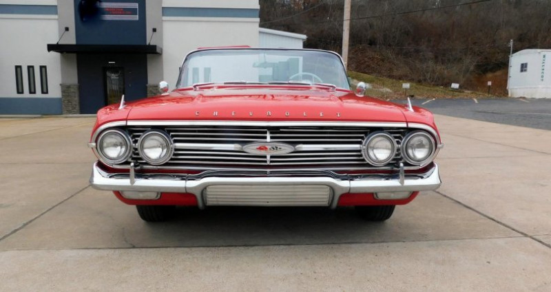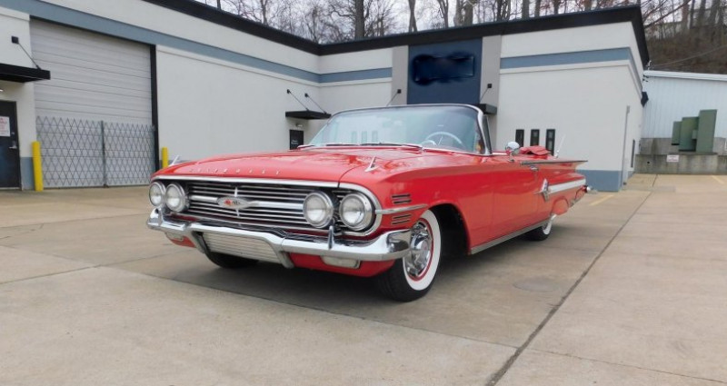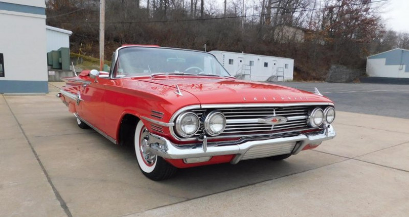 Informations fournies par le vendeur : 1960 Chevrolet ImpalaCONVERTIBLERED (exterior, interior)348 (engine)Automatic (transmission)Rear Wheel Drive (drivetrain)9, 206 (mileage)Red convertible bootUpgraded stereo (head unit, amp, 10 disc cd changer, upgraded speakers)Power steeringPower brakesPower seatPower windowsPower topFrame rotisserie restorationLaser straight body panels (Arizona car)Big finsUpgraded chrome and bright workRed and white houndstooth interiorMatching numbers (implicit)Rebuild (implicit)Condition: excellent (implicit)Storage: unknownMaintenance: unknown. Provenance : Missouri. Disponibilité : environ 7 semaines, clés en main. 115 500 € tout compris (importation, taxes, procédure d'immatriculation). Nous représentons les acheteurs sur le marché nord-américain et sécurisons chaque étape du processus, de la sélection à la mise en circulation. Annonce publiée le 19/11/2025