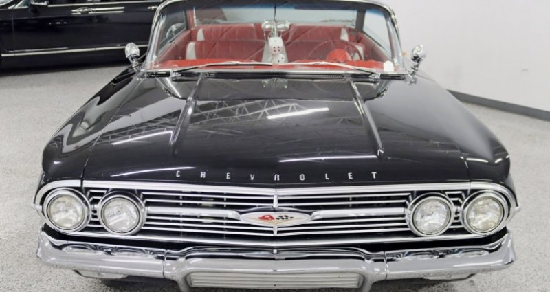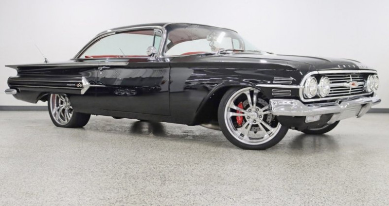 1960 Chevrolet Impala Hardtop, Black exterior, Red interior, Automatic transmission, Rear Wheel Drive, 348ci V8, Edelbrook Dual-Quad Induction, Wilwood 4-wheel disc brakes, Heavily Upgraded Suspension, Large-Diameter Exhaust, Flowmaster Mufflers, Edelbrook Fuel Pump, MSD Pro-Billet Distributor, MSD Super Conductor Plug Wires, MSD Blaster 2 Coil, Customized leather interior, Classic Instruments telemetry, Modern air conditioning, Power rack-and-pinion steering, Era-correct Tuxedo Black paint, 20 Front / 22 Rear Polished Raceline wheels, Pioneer Radio, AM/FM/CD/MP3/AUX. Provenance : Illinois. Disponibilité : environ 7 semaines, clés en main. 101 500 € tout compris (importation, taxes, procédure d'immatriculation). Annonce publiée le 28/11/2025